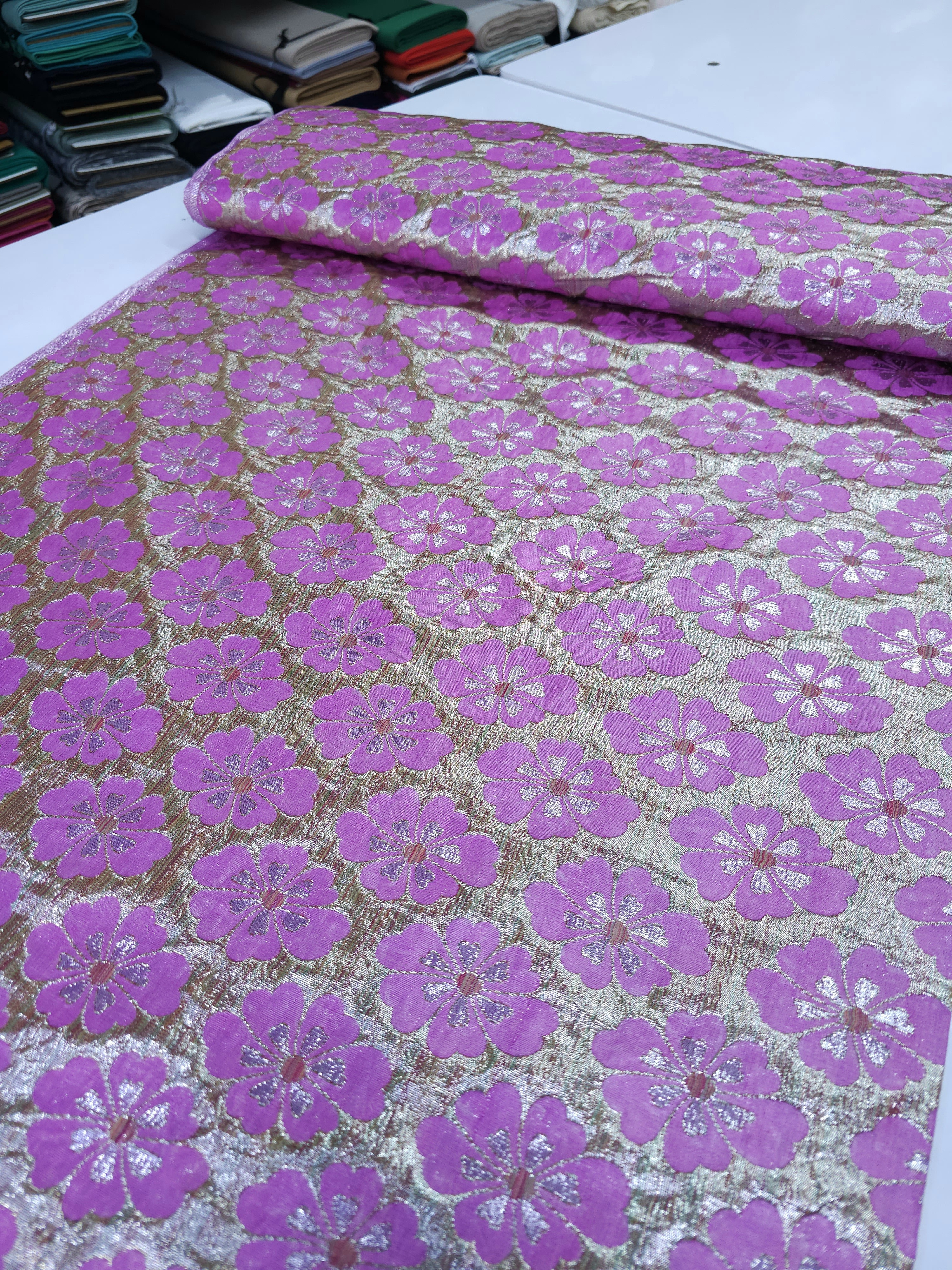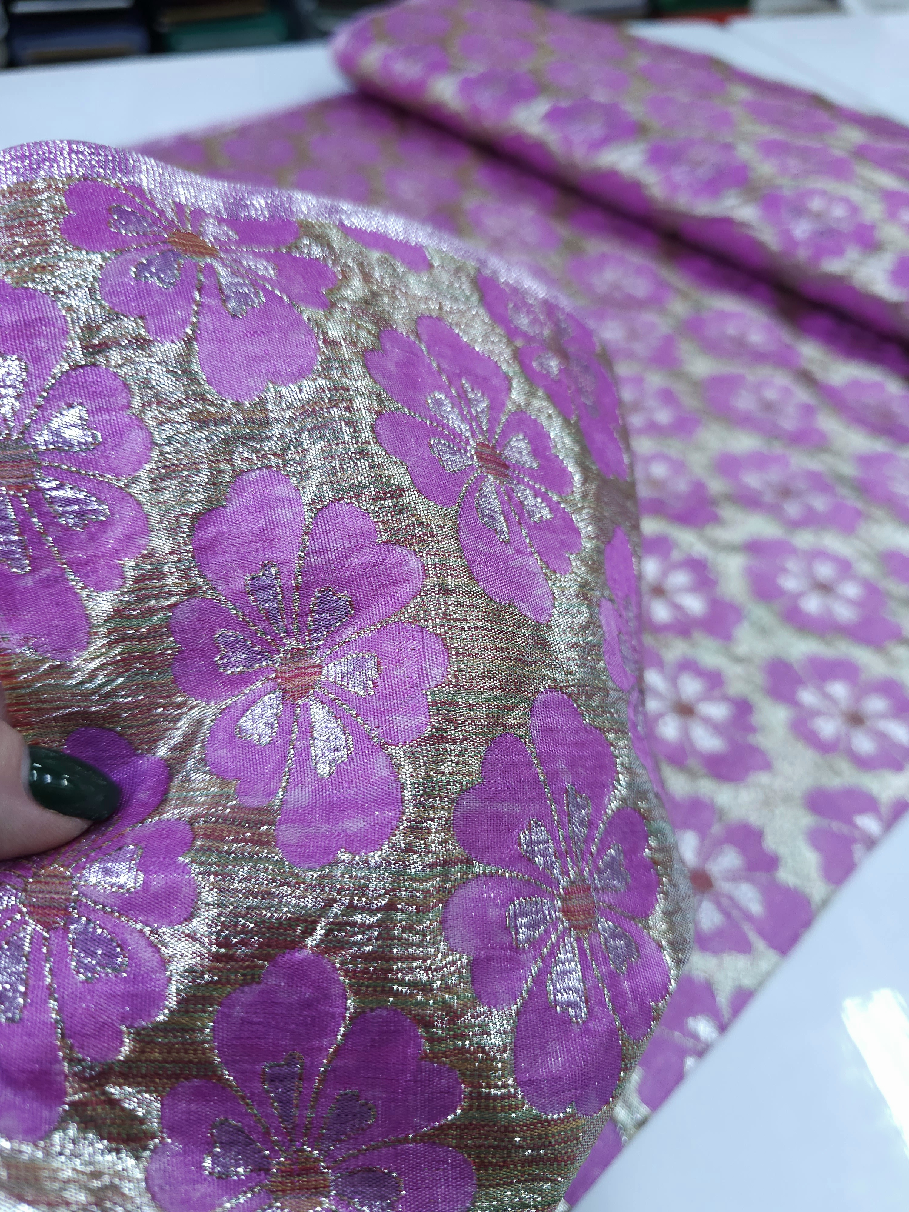 רוחב: 1.1 מטר תוצרת: הודו בד ברוקרד אריג מתאים לתפירת בגדים, עיצוב הבית ומטפחות