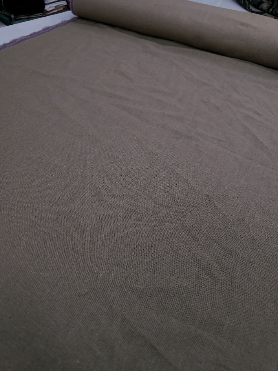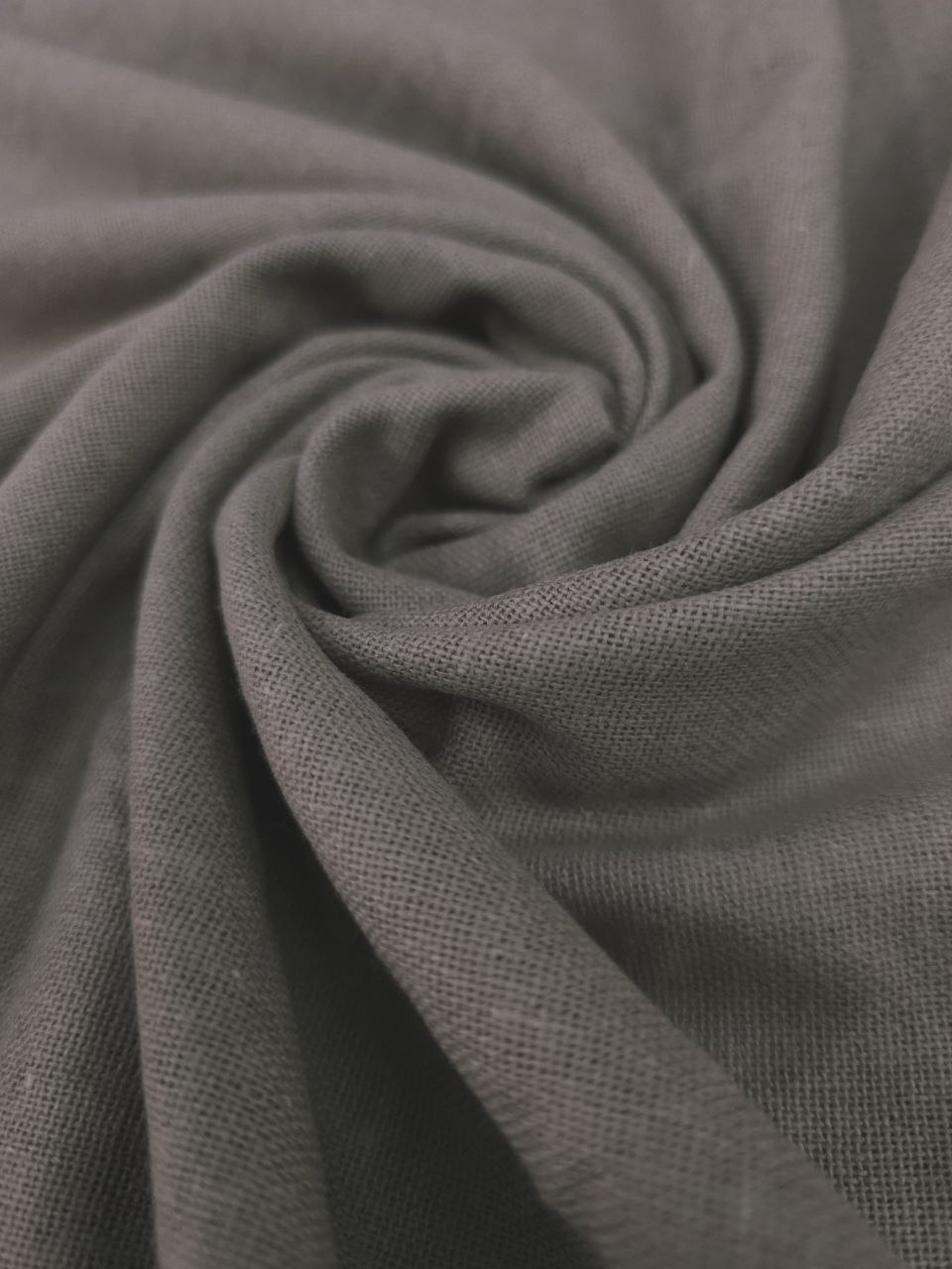 בד פשתן בגוון ניטרלי עם נטייה לזית, מרקם טבעי ועדין.
