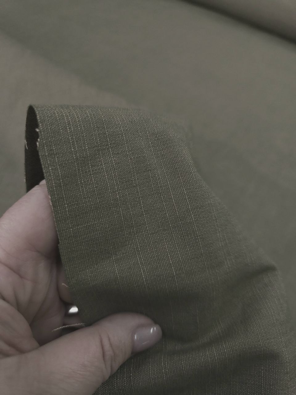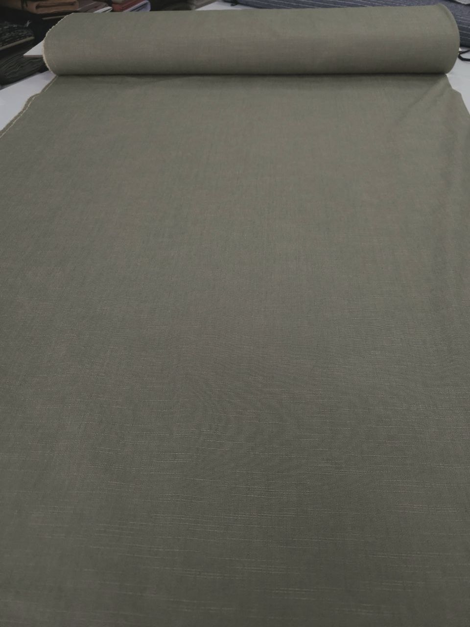 בד פשתן חום-חאקי במרקם טבעי