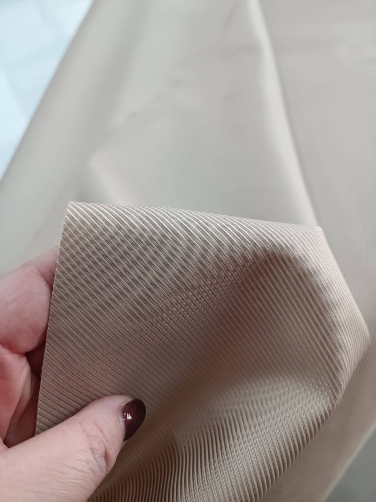 בד קורדורה דוחה מים. צבע קרם עם טקסטורה של פסים מקבילים.