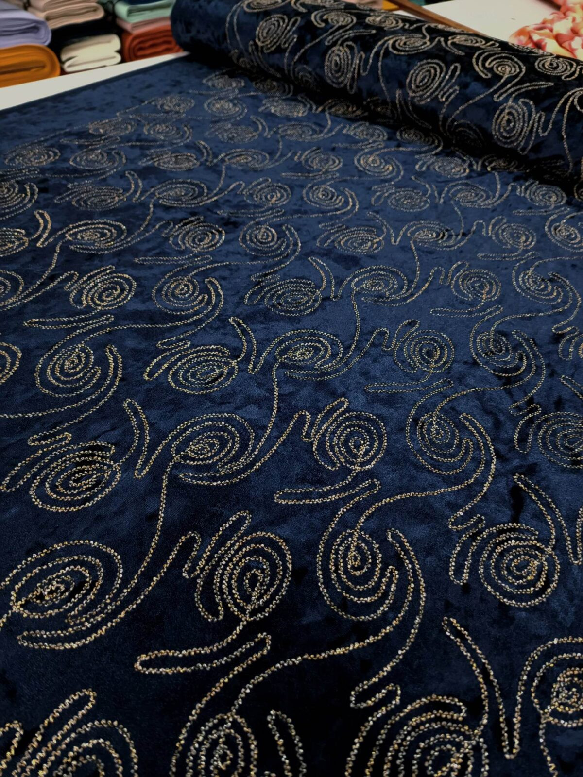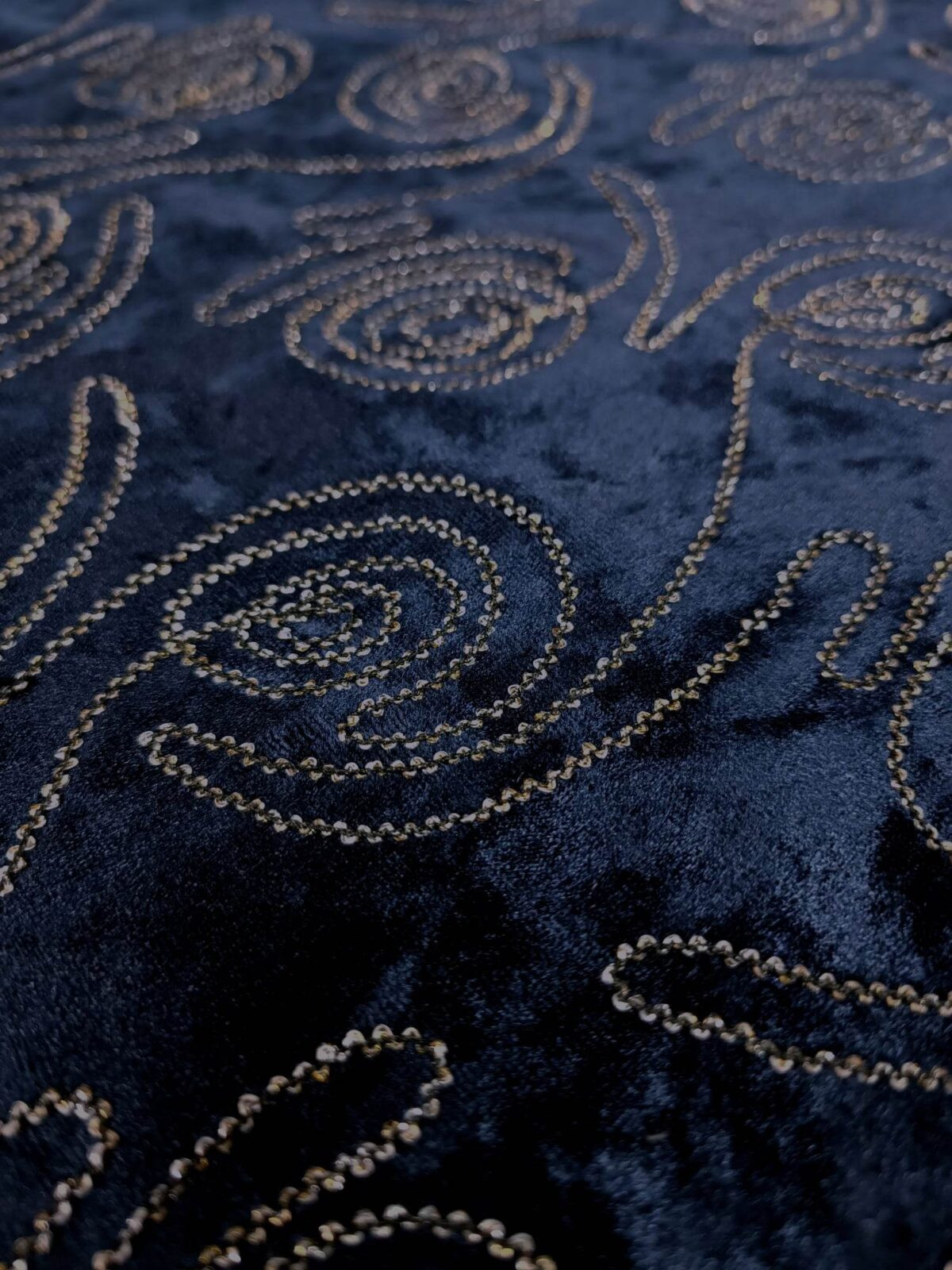בד קטיפה לייקרה עם פס זהב התפור בצורת עיגולים