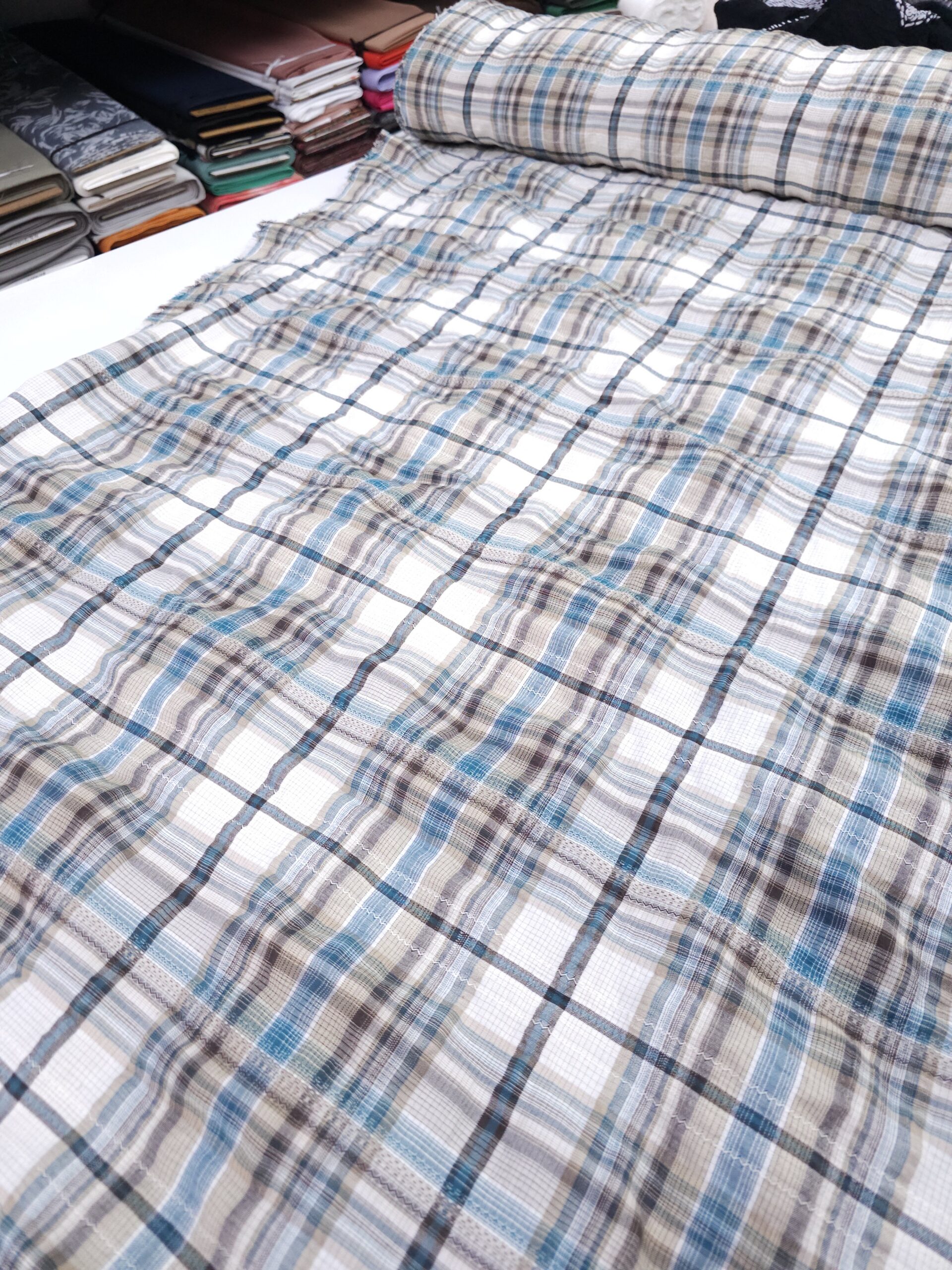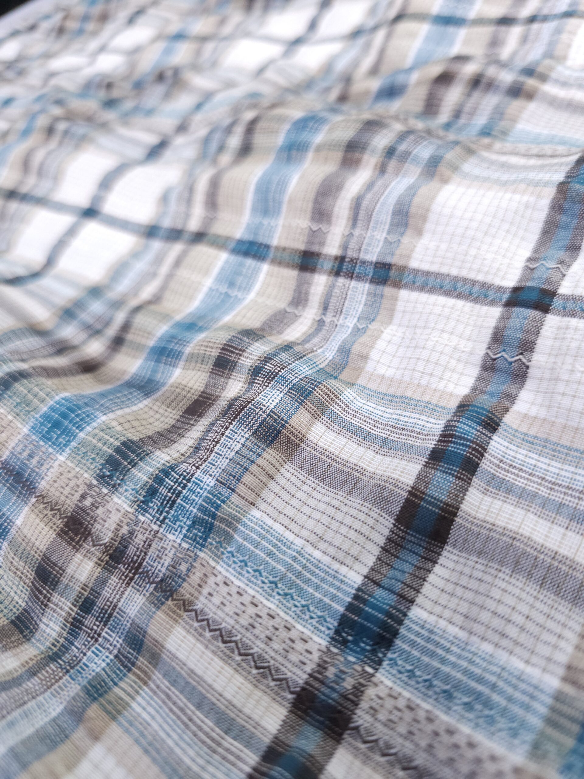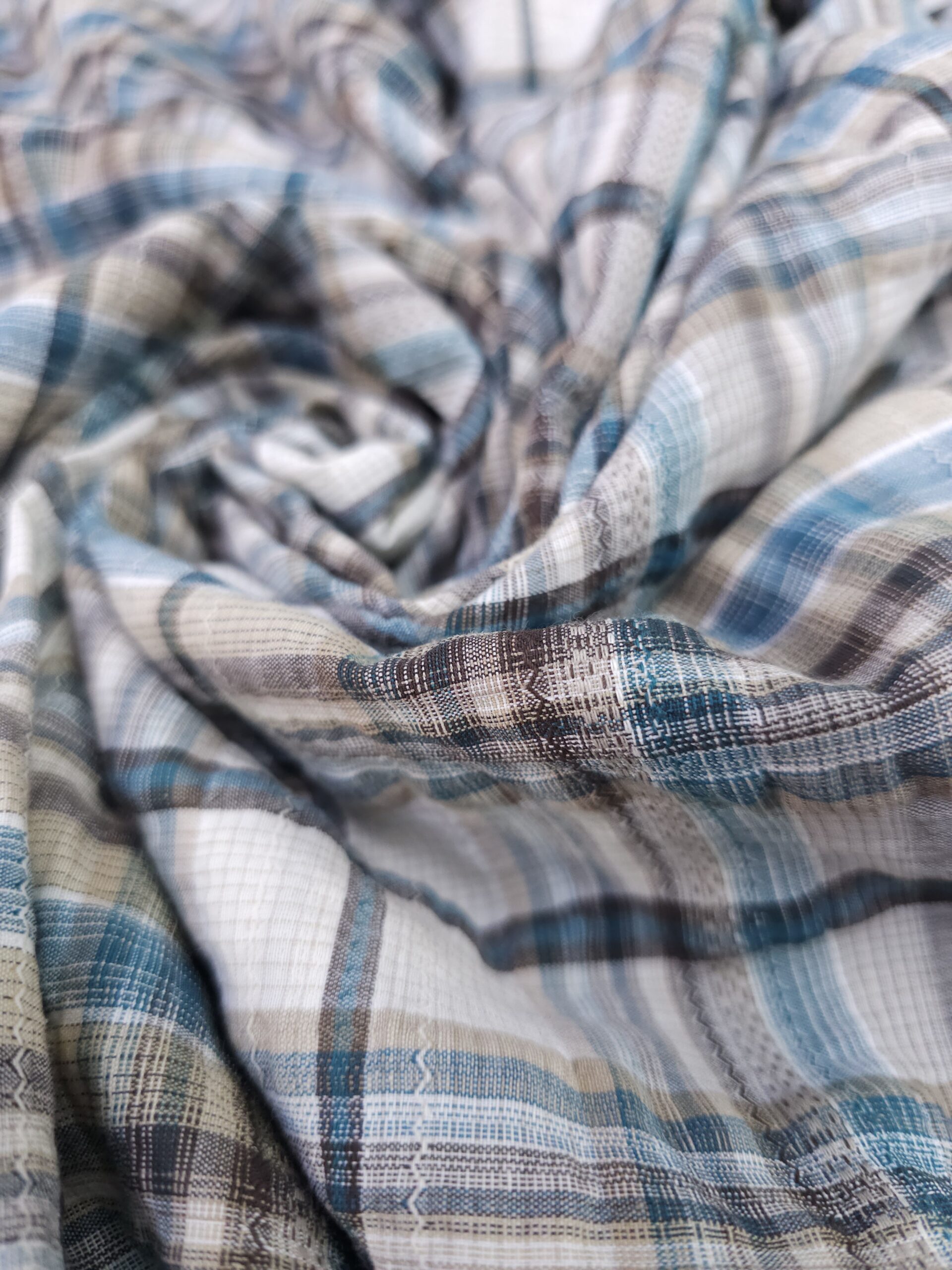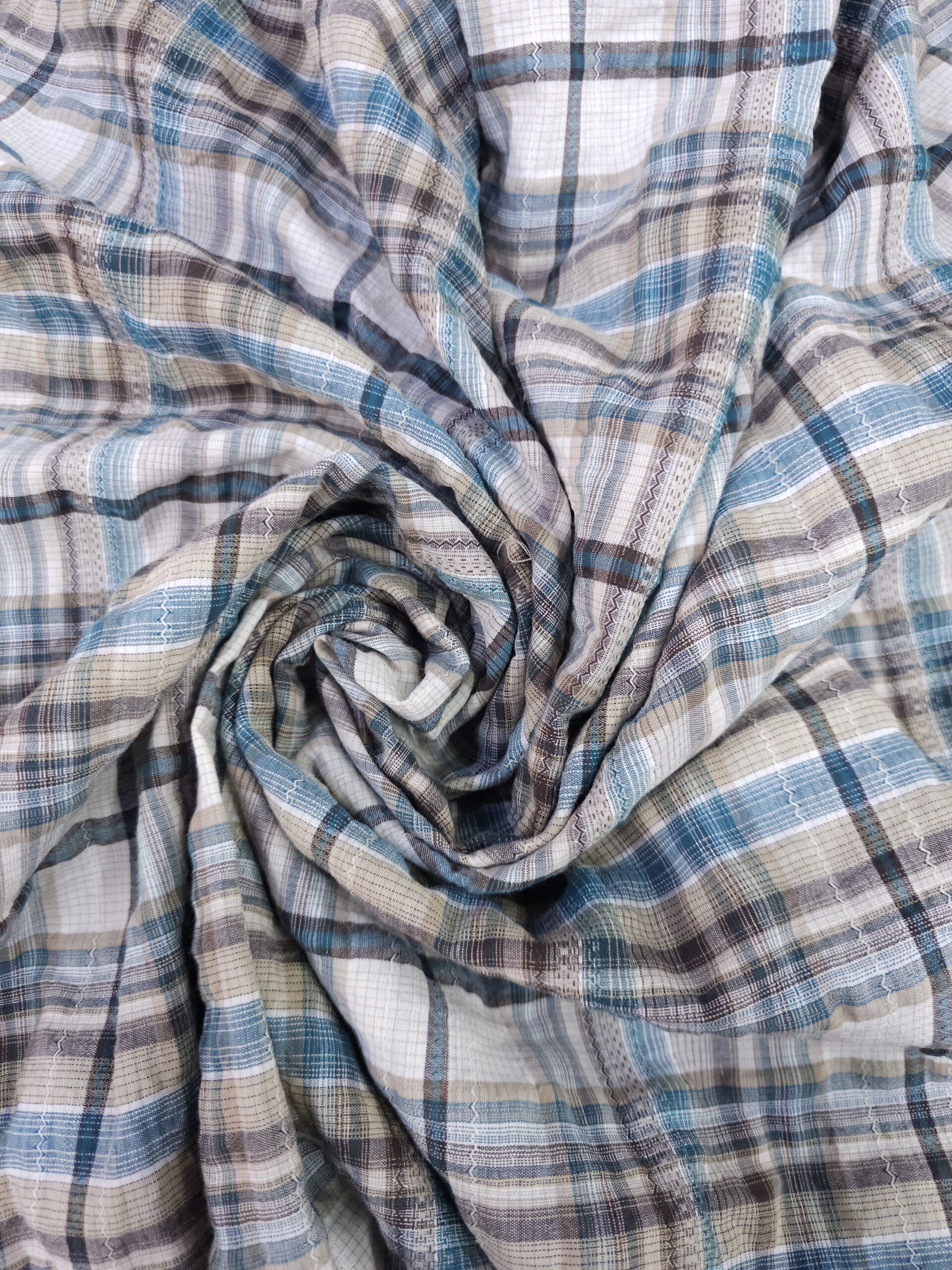 כותנה מקומטת משובצת בגוונים חום-טורקיז