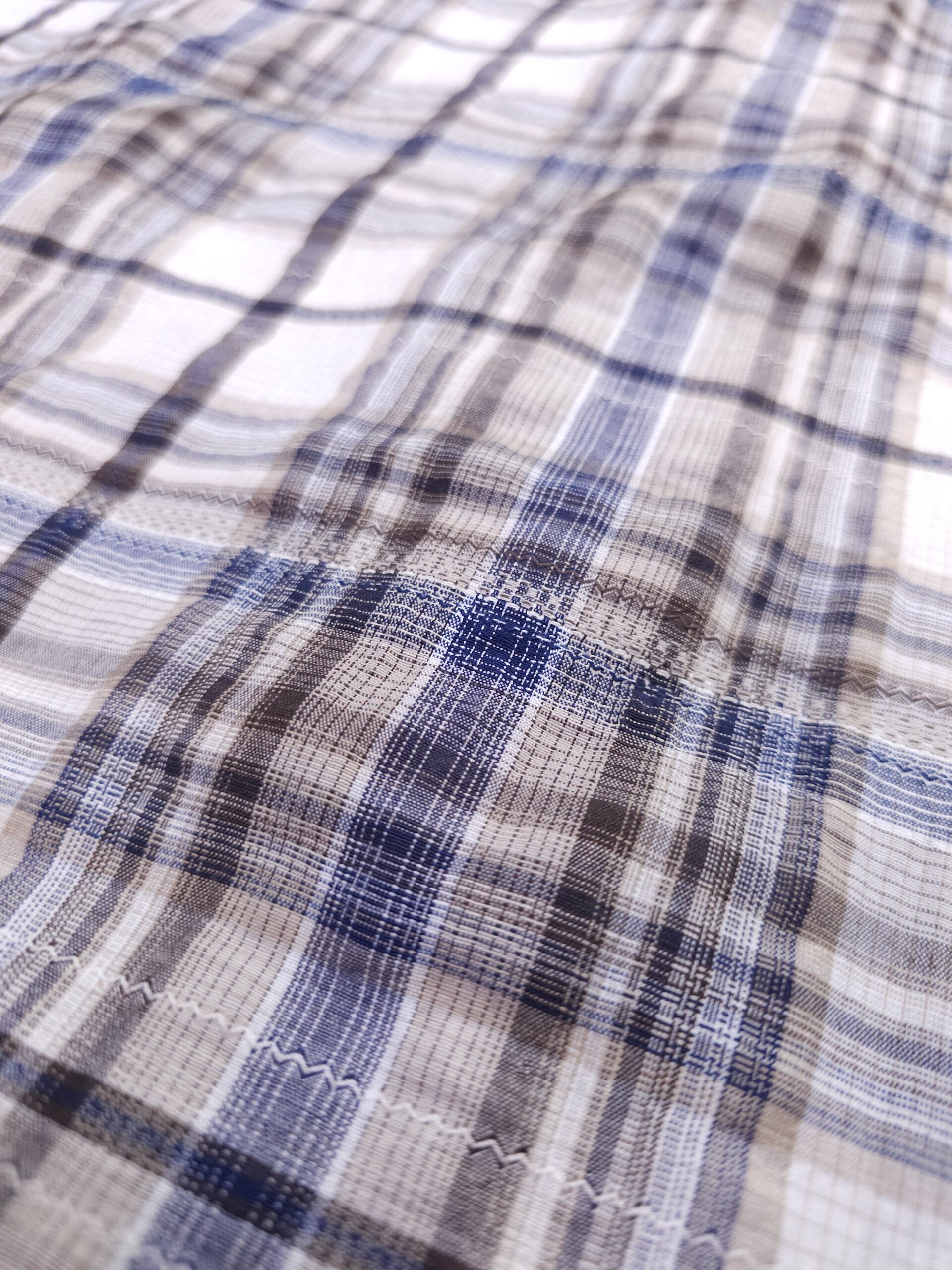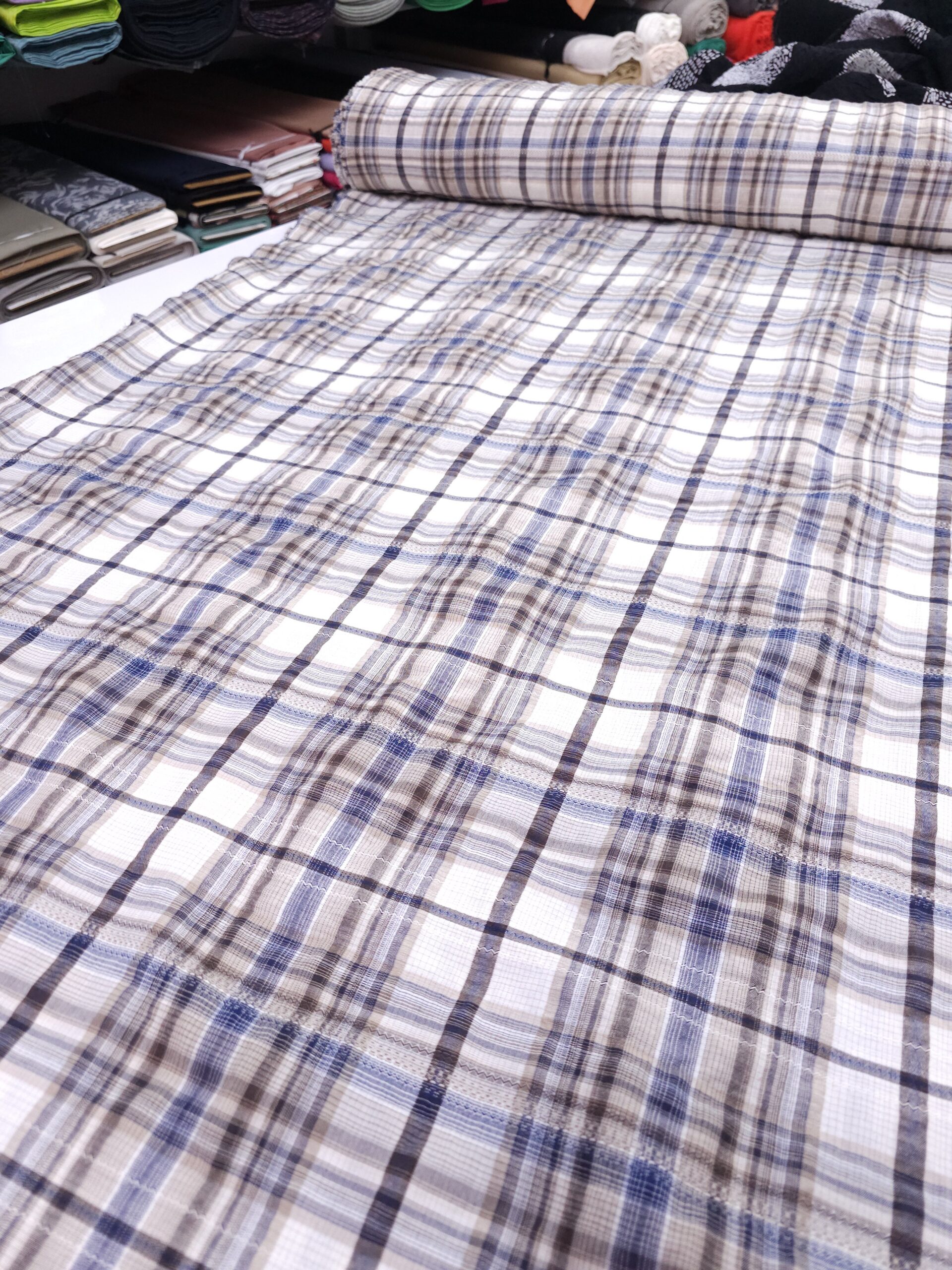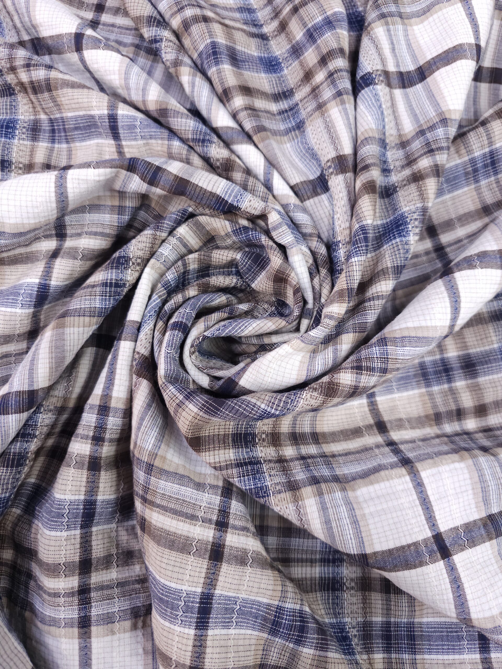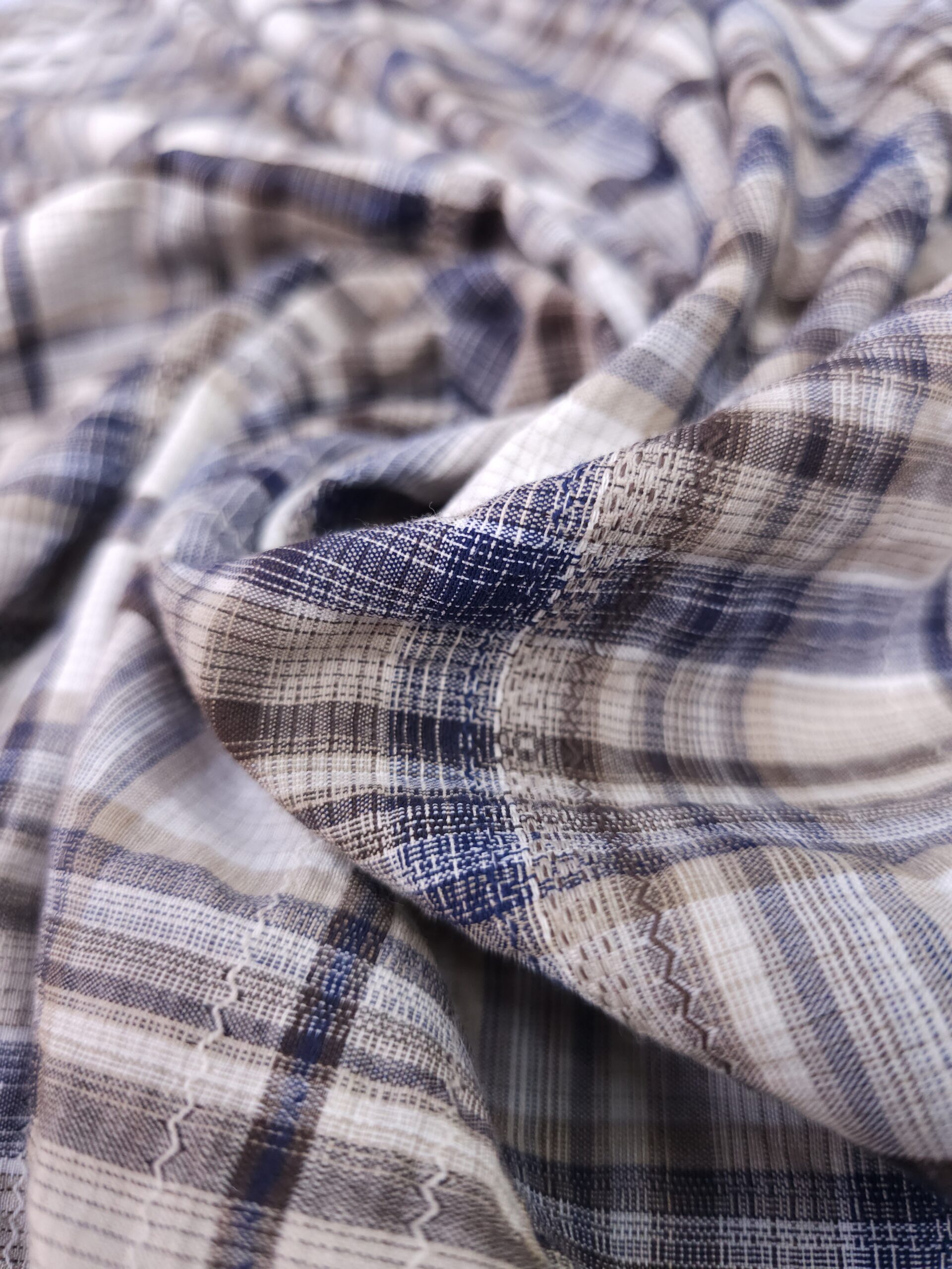 כותנה מקומטת משובצת בגוונים חום-כחול