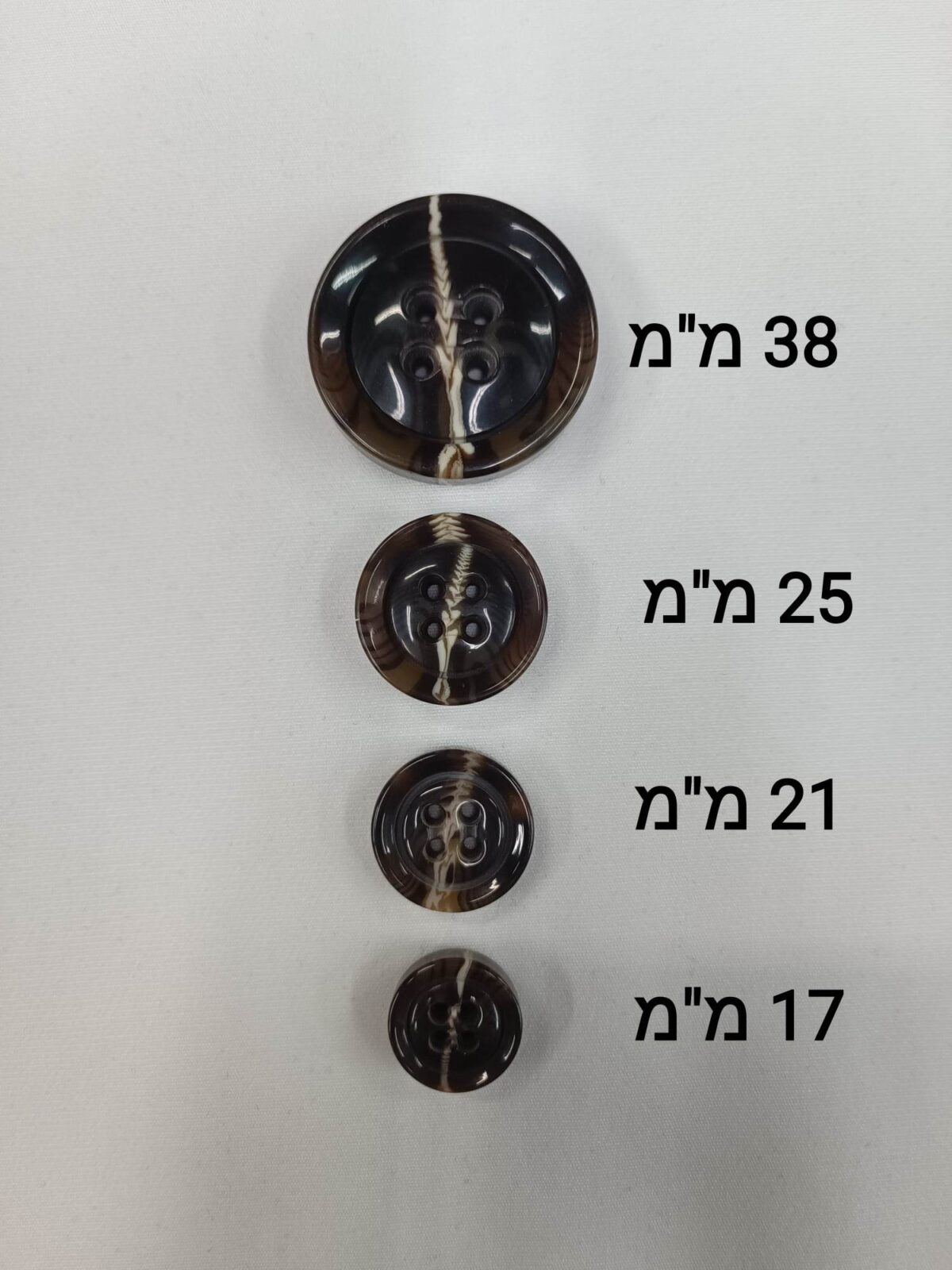 כפתור פלסטיק בקוטר 38, 25, 21 ו-17 מ"מ
