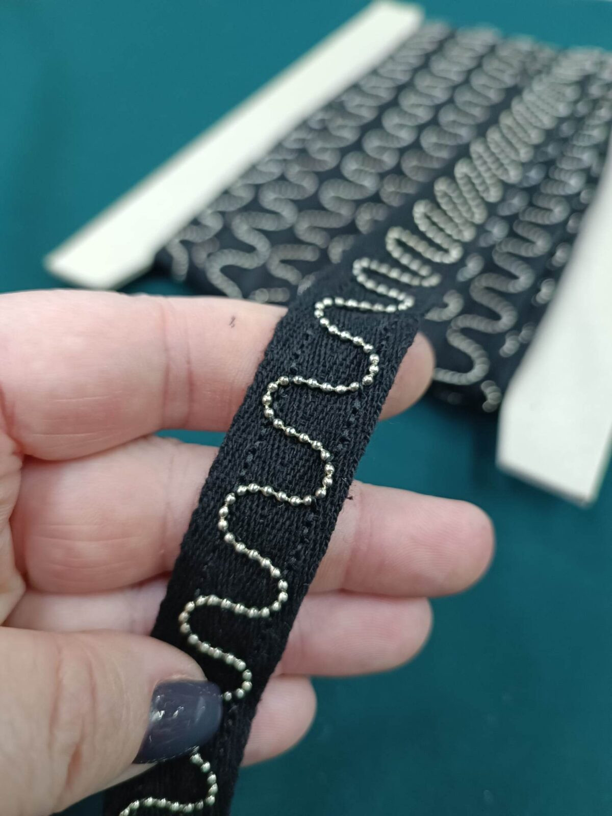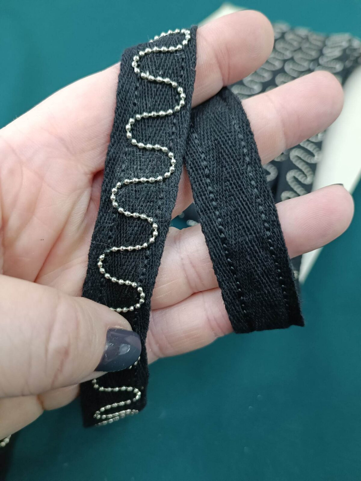 סרט כותנה מעוצב עם שרשרת מתכת בצורת גלים