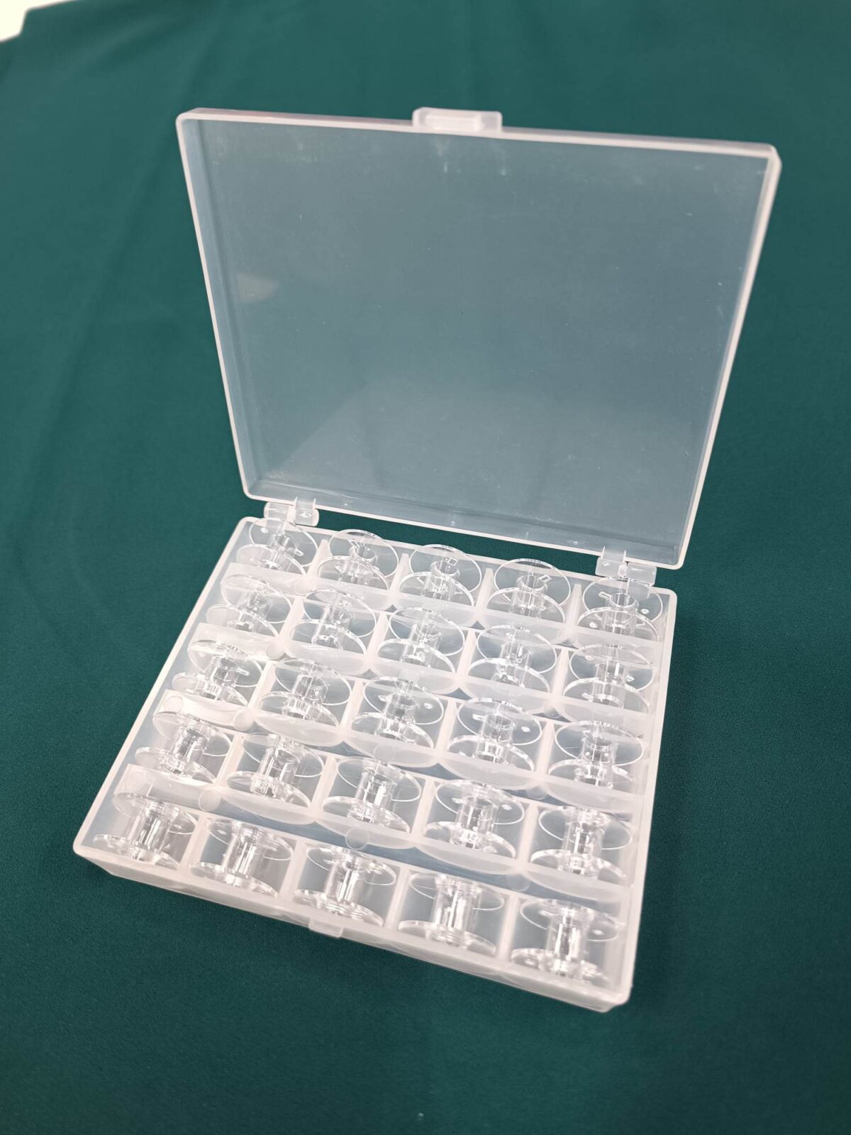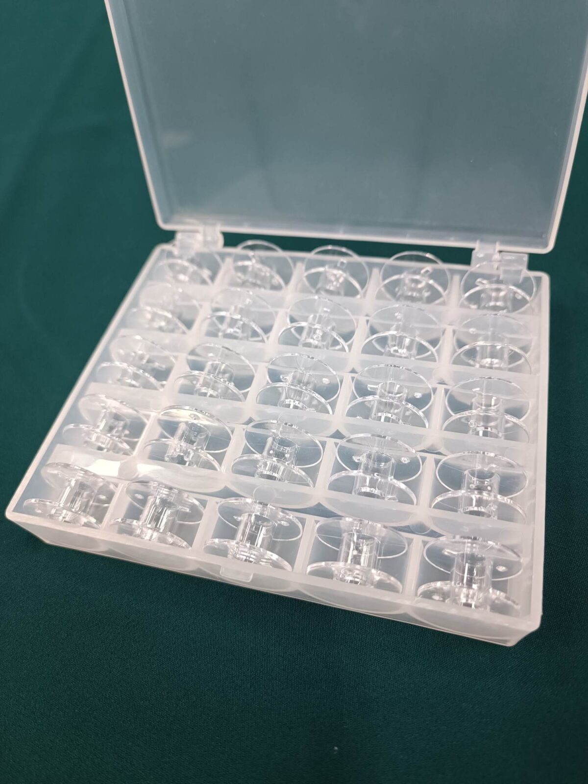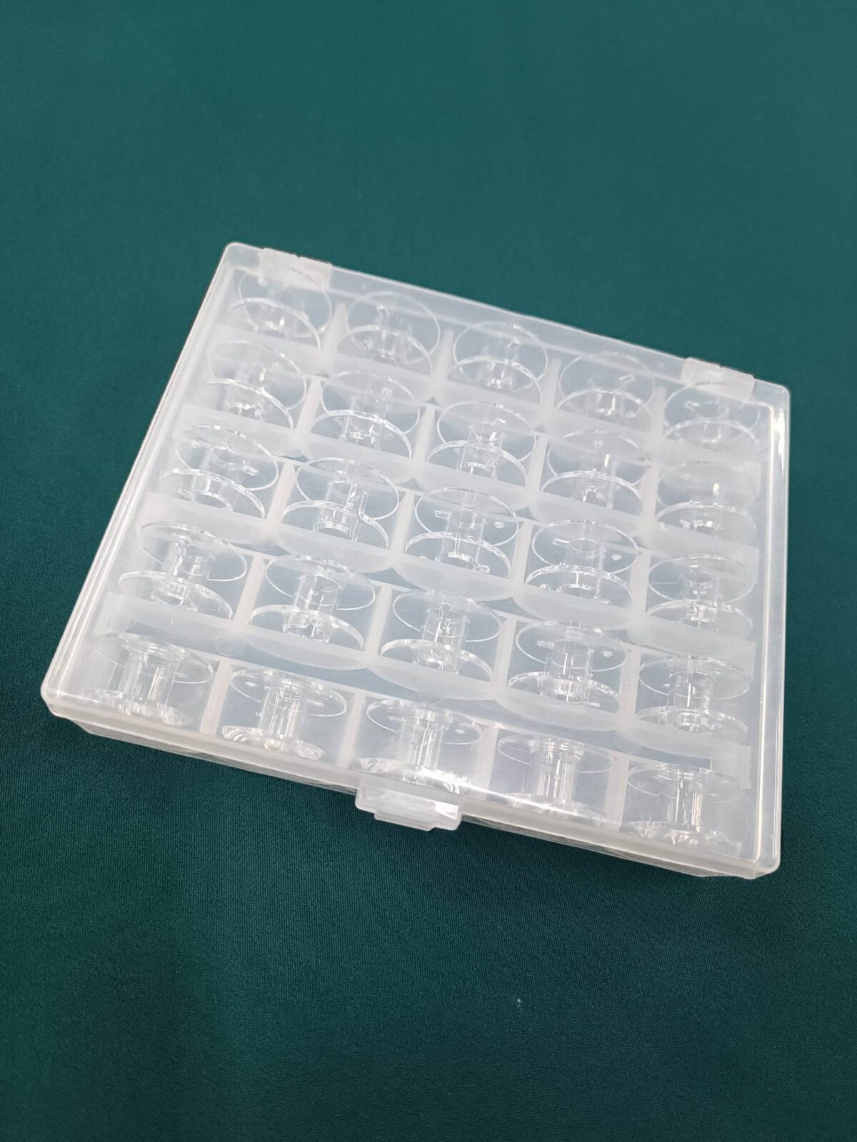 קופסא עם 25 סלילים שקופים למכונת תפירה בייתית