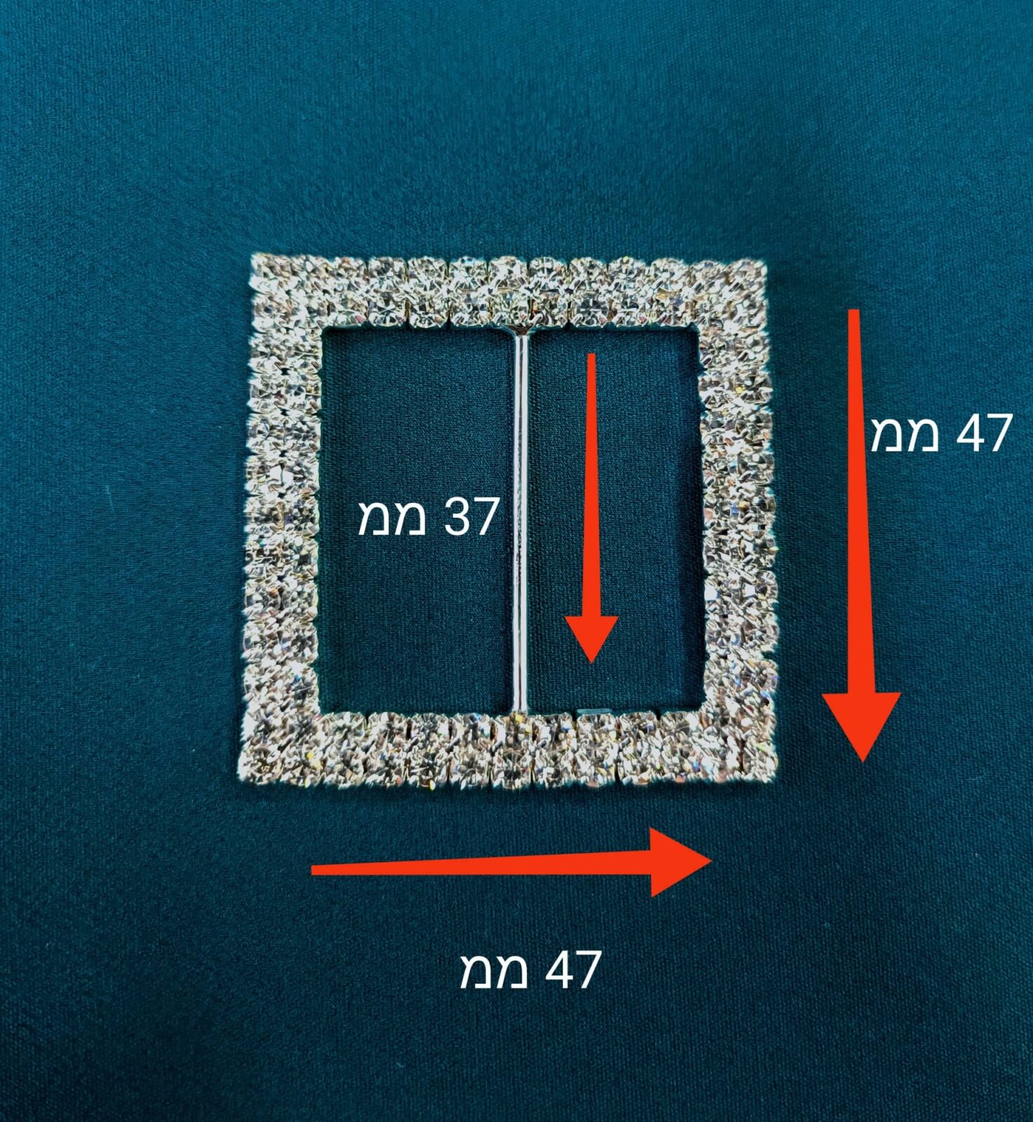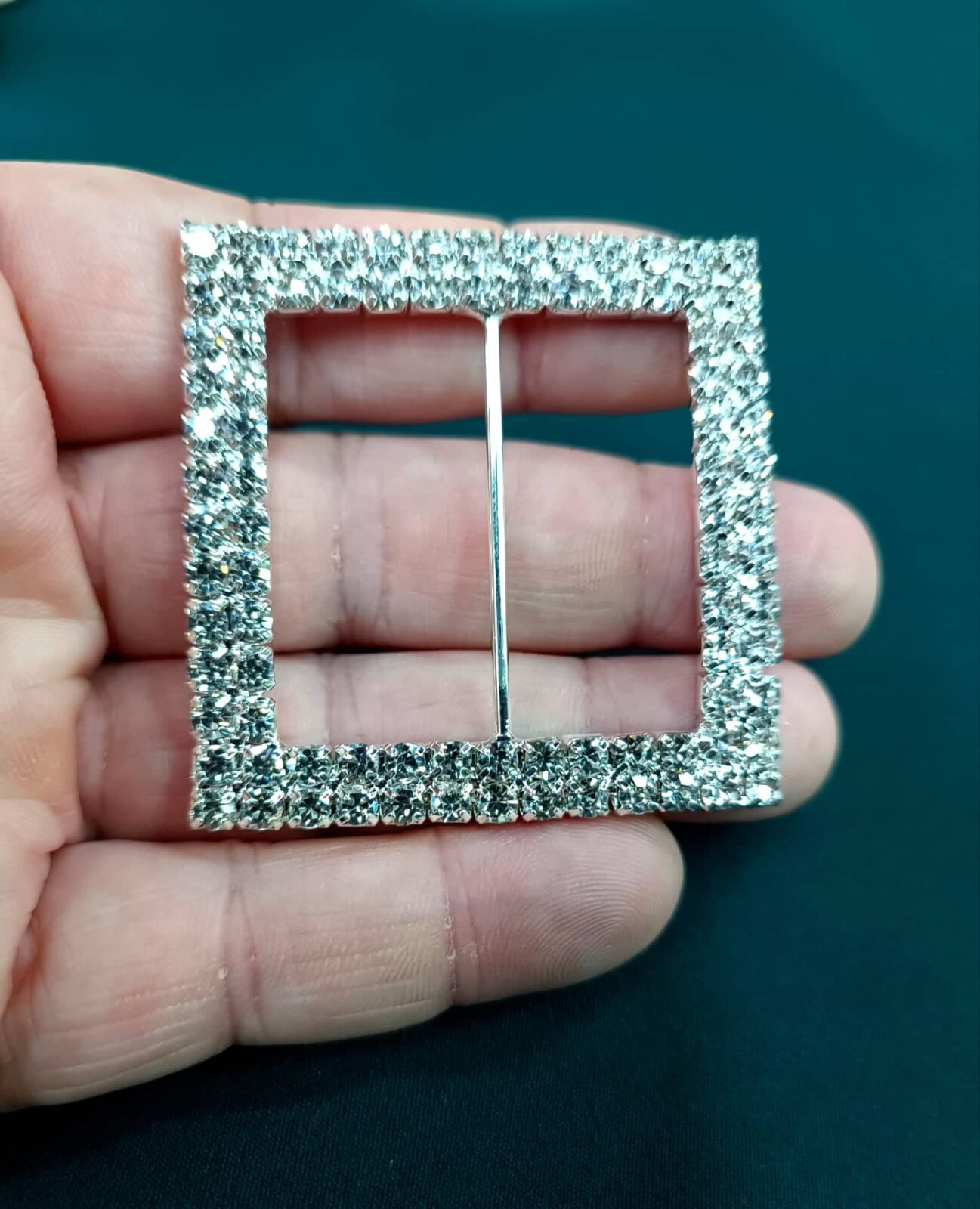 אבזם מרובע 47 על 47 מ"מ מתכת ציפוי צבע כסף עם קריסטלים