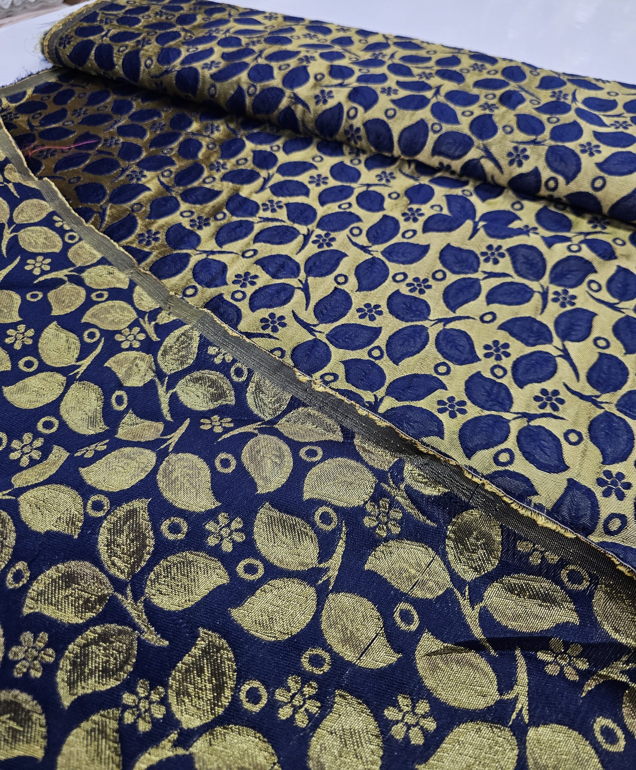 רוחב: 1.2 מטר תוצרת: הודו בד ברוקרד סריג מתאים לתפירת בגדים, עיצוב הבית ומטפחות