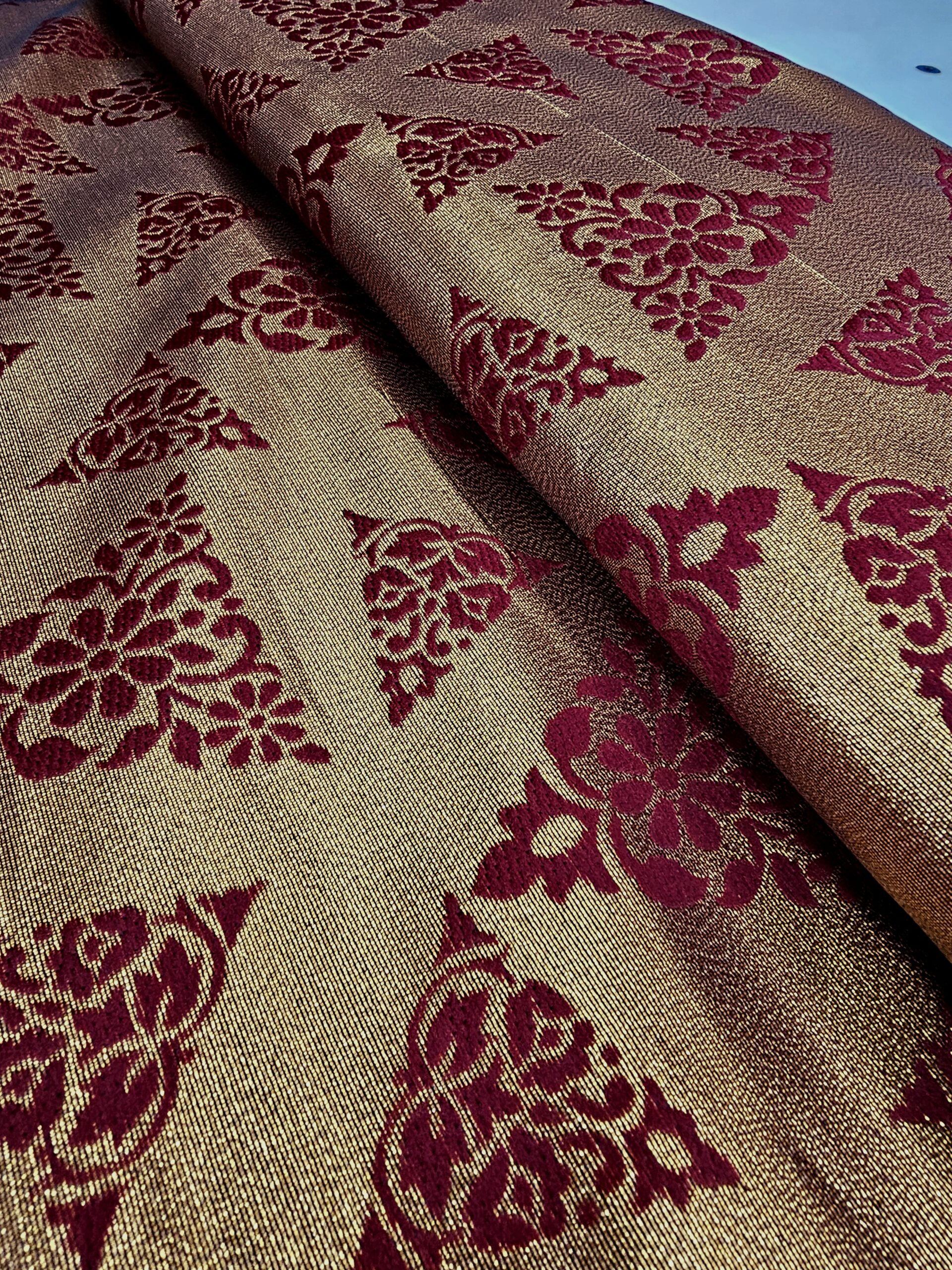 רוחב: 1.2 מטר תוצרת: הודו בד ברוקרד סריג מתאים לתפירת בגדים, עיצוב הבית ומטפחות
