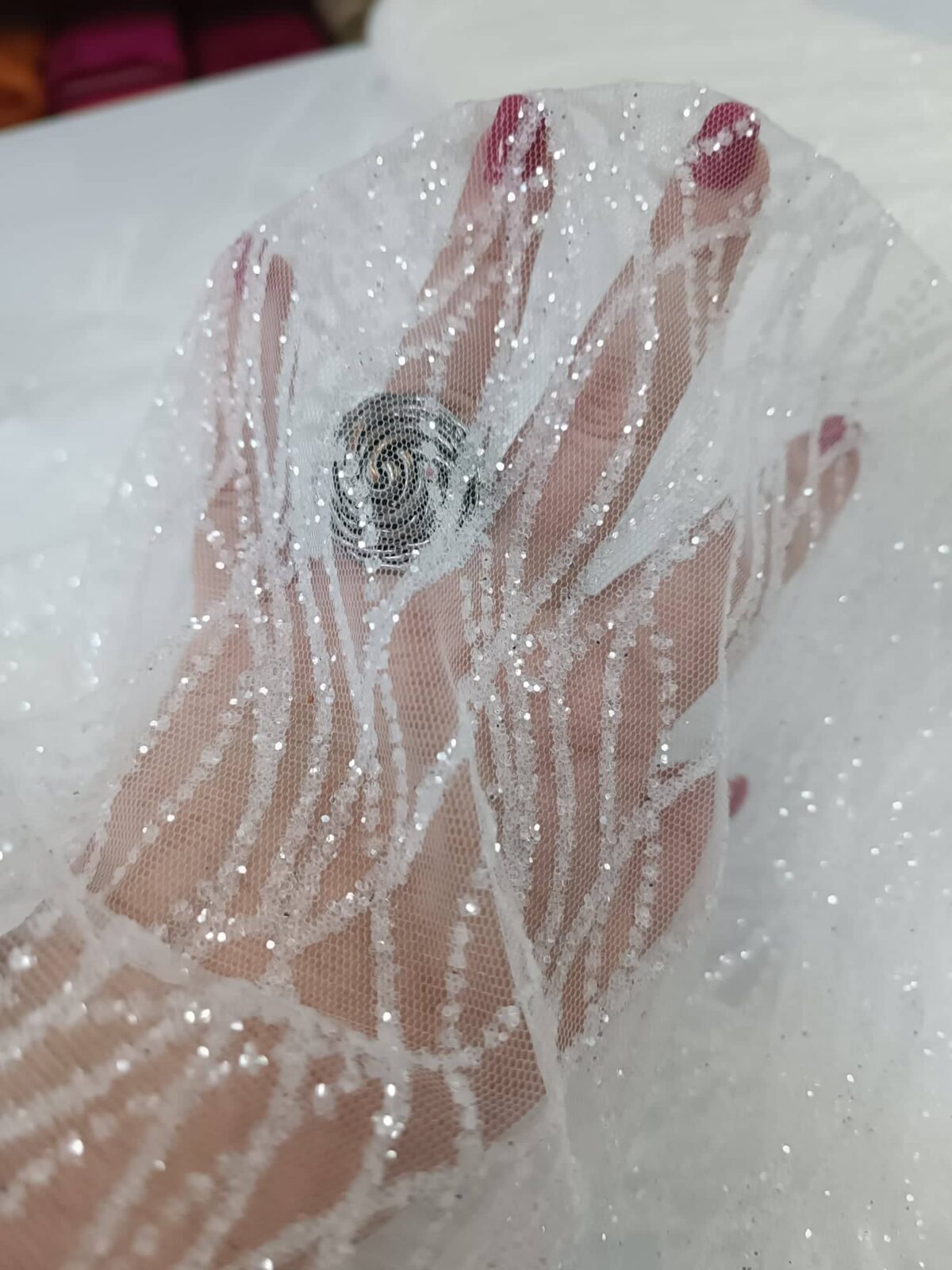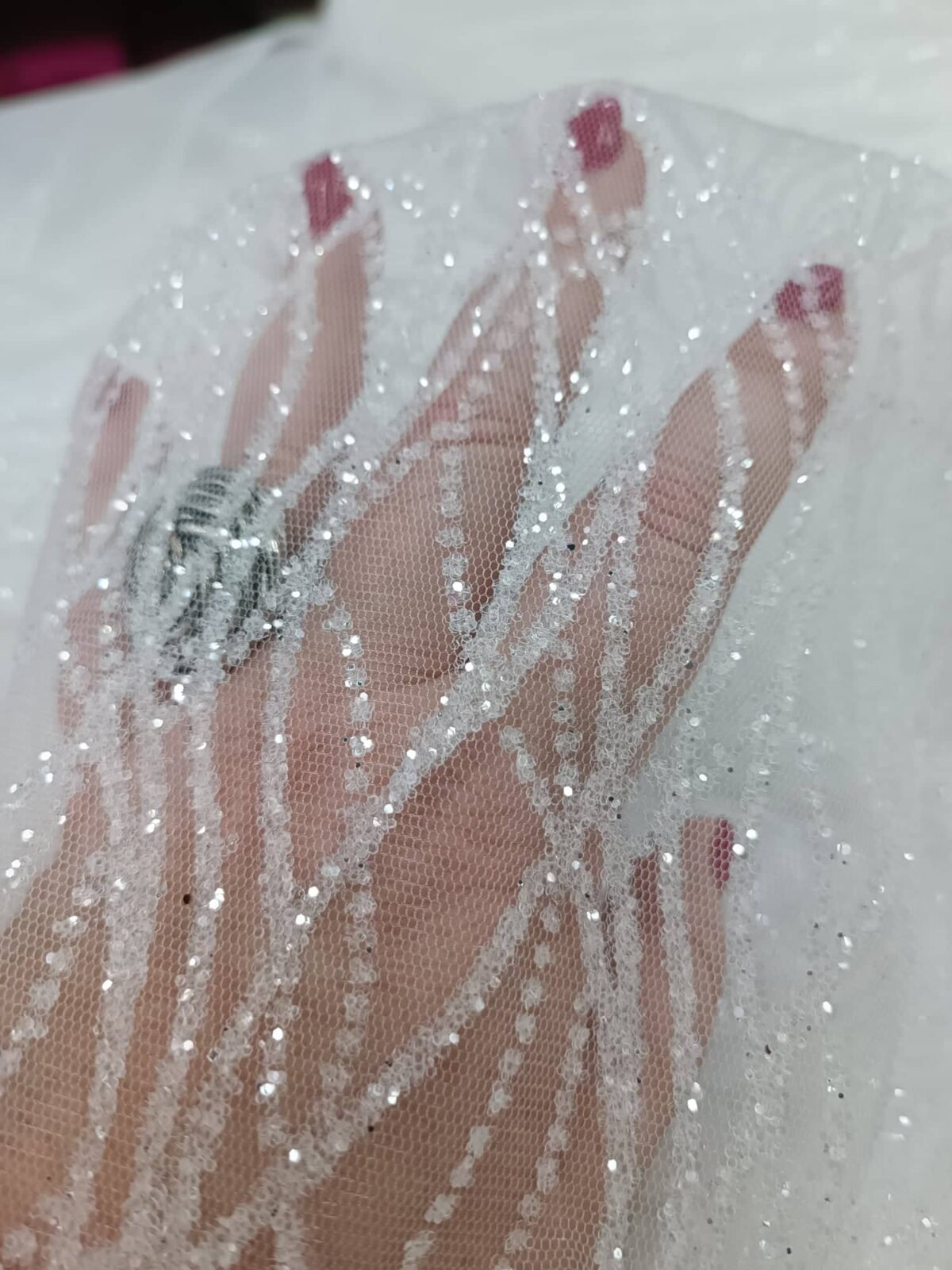 בד אריג שקוף על בסיס טול לייקרה עם פסים מעוגלים