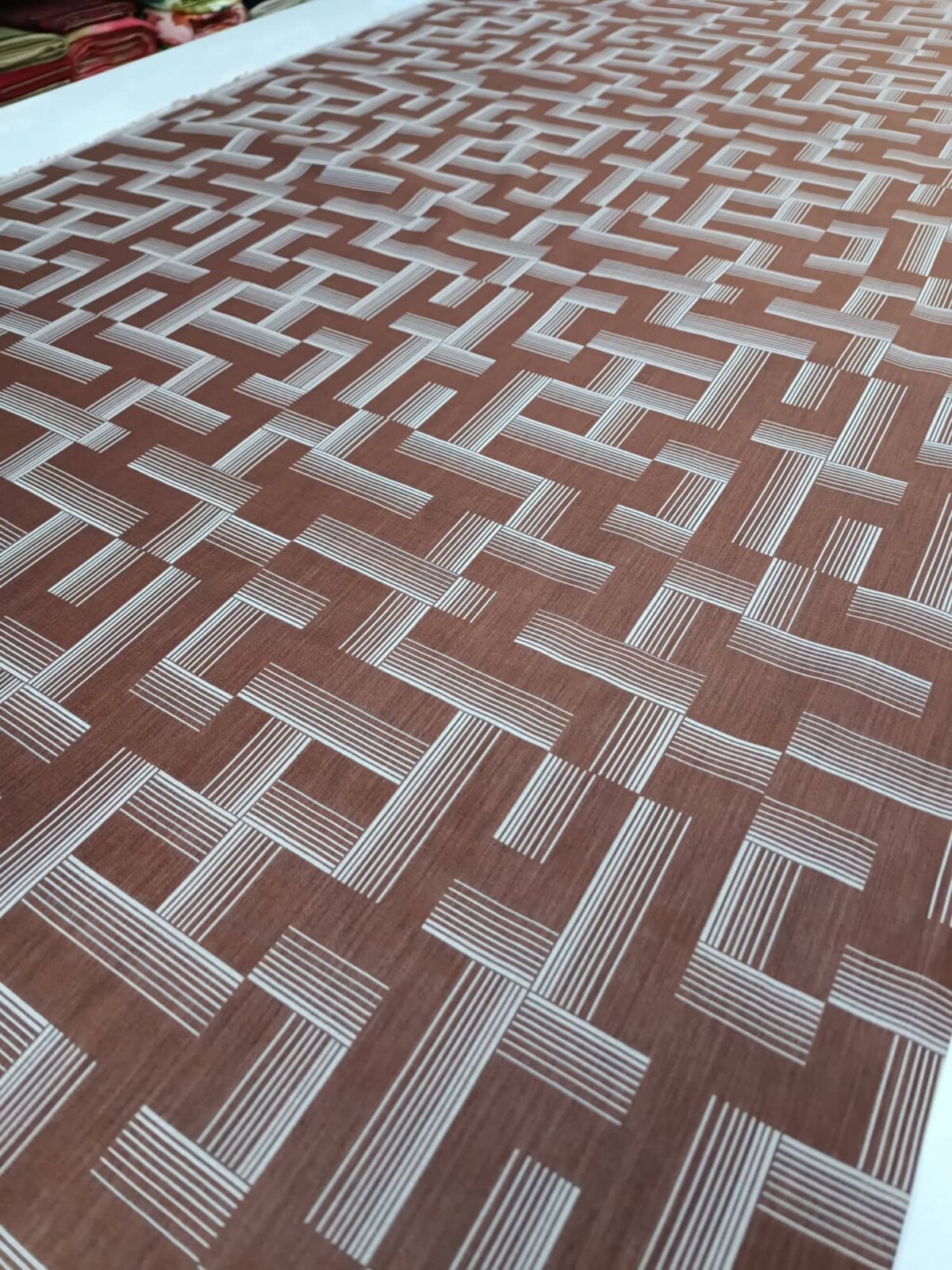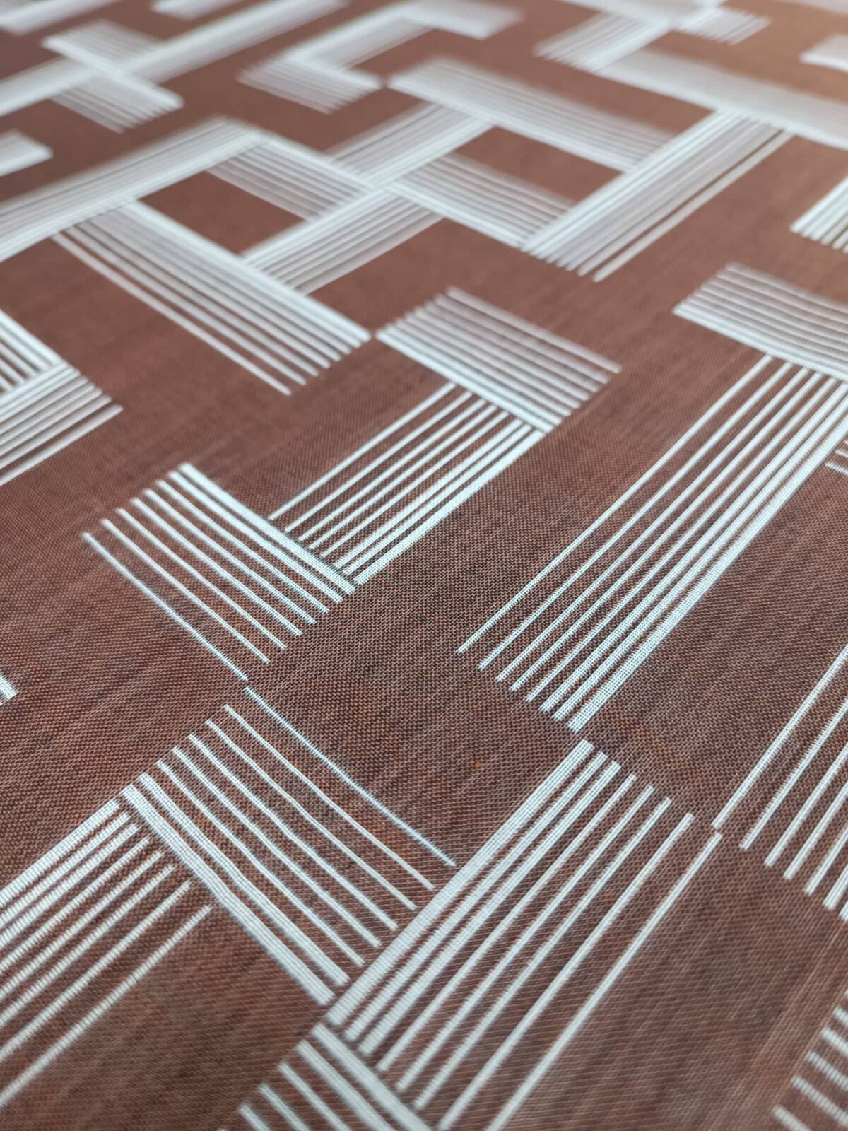 בד כותנה בצבע חום עם דוגמה בצבע לבן. לא שקוף