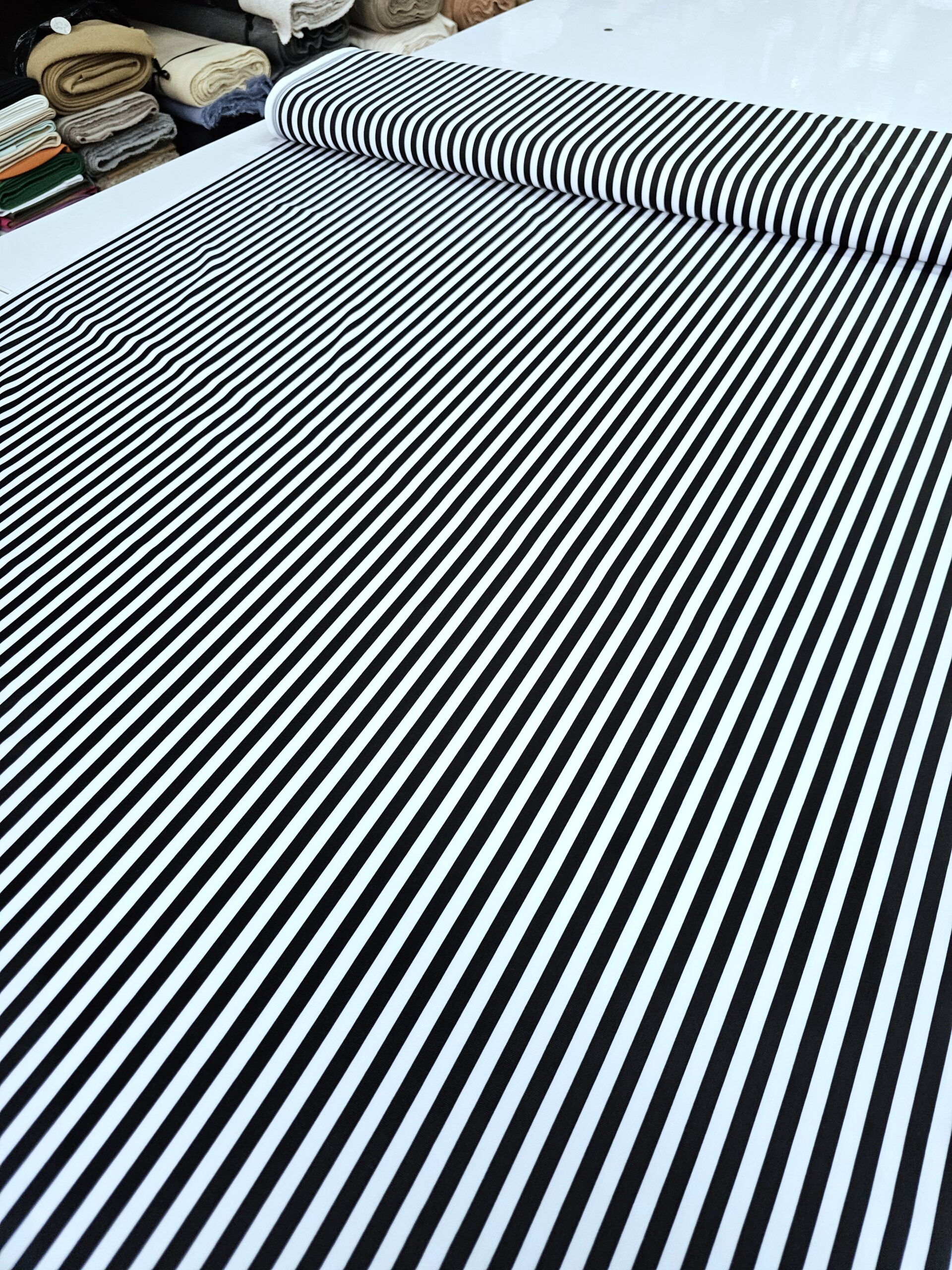 צבע: שחור-לבן רוחב: 1.6 מטר רוחב פס – 7 ממ מומלץ לתפירת בגדי ים ותחפושות פורים