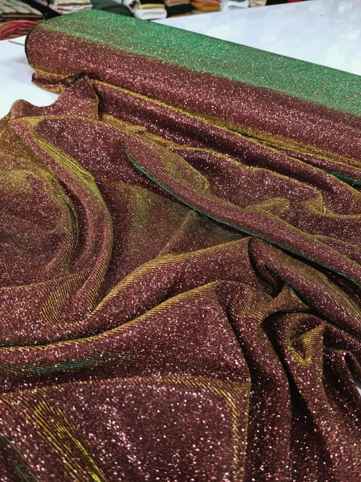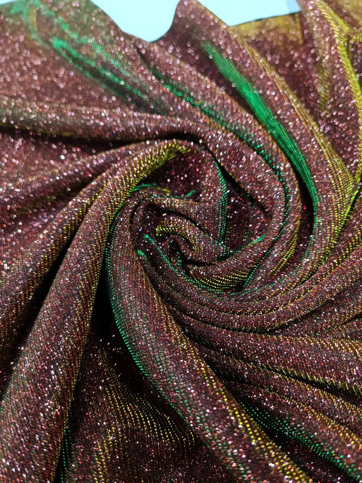 בד סריג מנצנץ עם מתיחה. מומלץ לשמלות ערב
