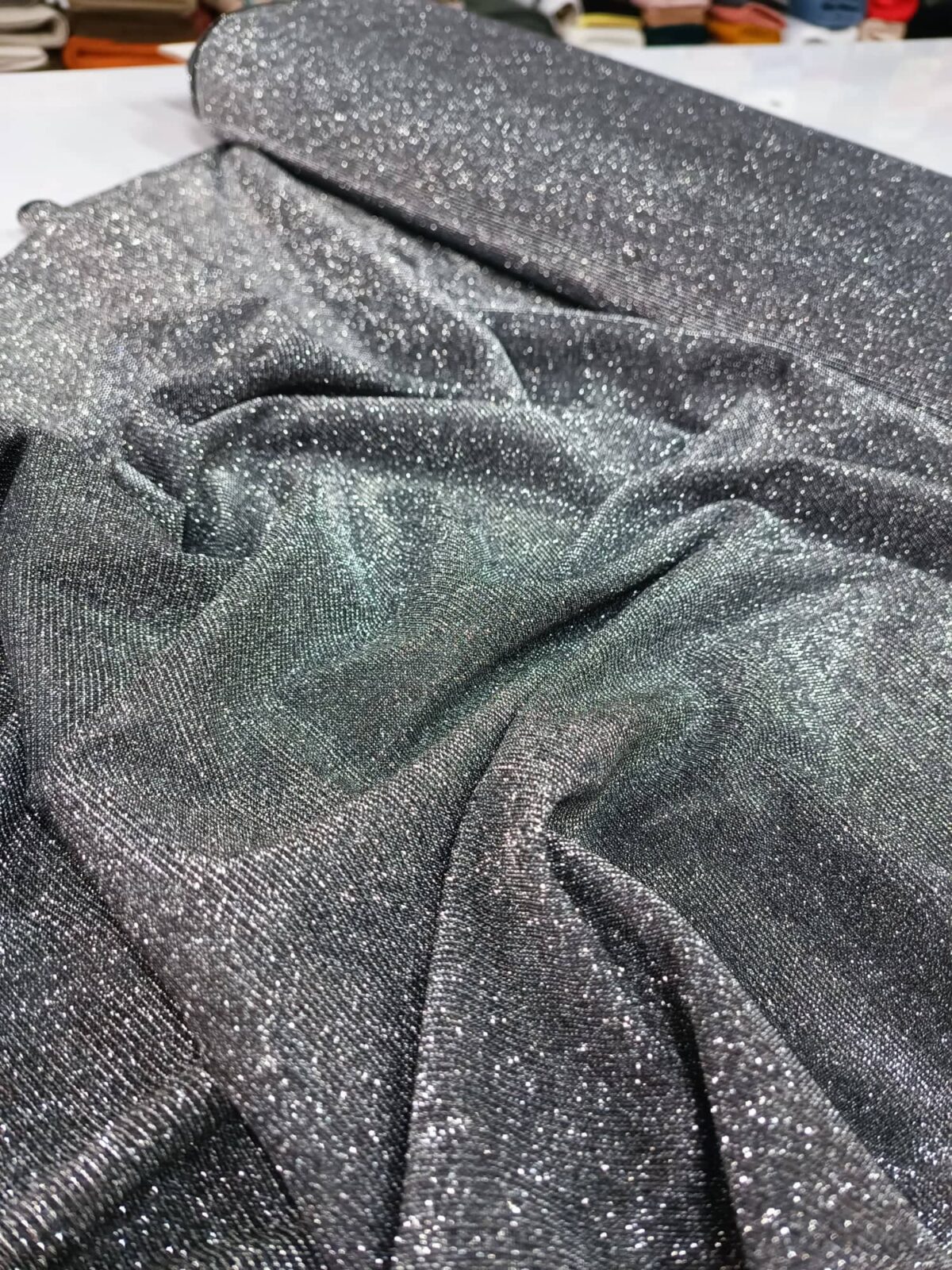 בד סריג מנצנץ עם מתיחה. מומלץ לשמלות ערב