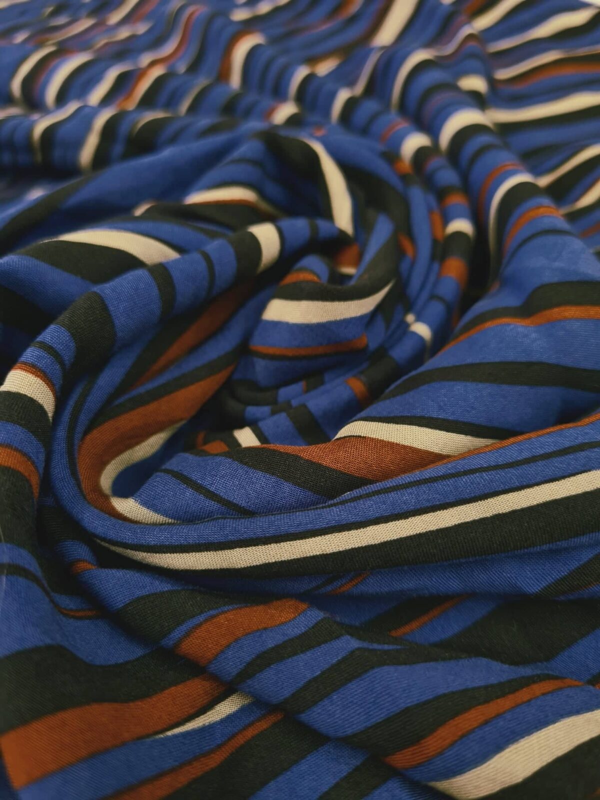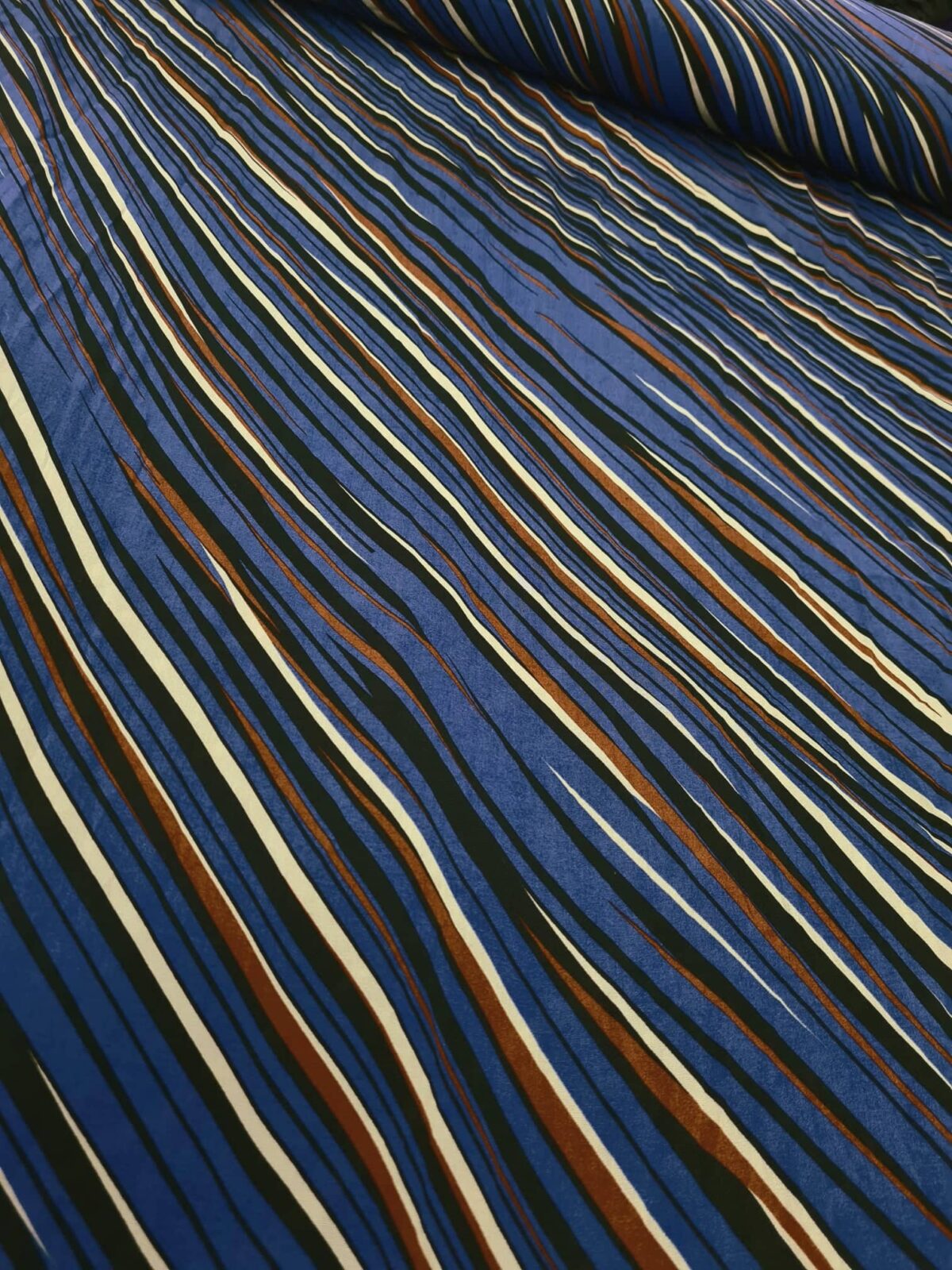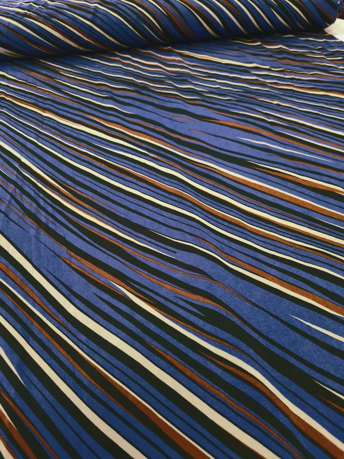 בד אריג ויסקוזה עם פסי גל על רקע כחול.