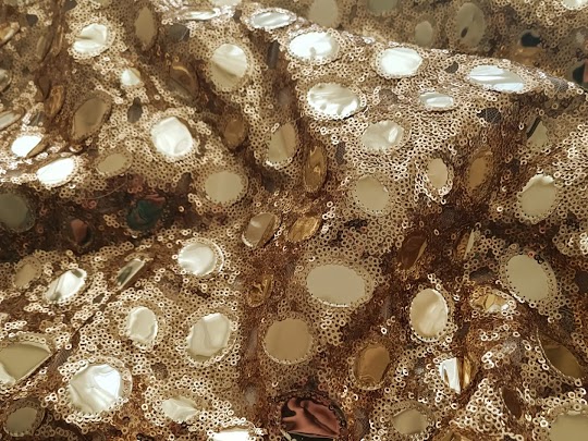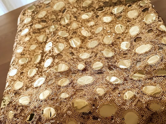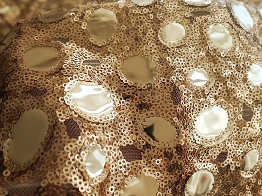 בד פייטים קטנים וגדולים בצבע זהב לשמלות ערב