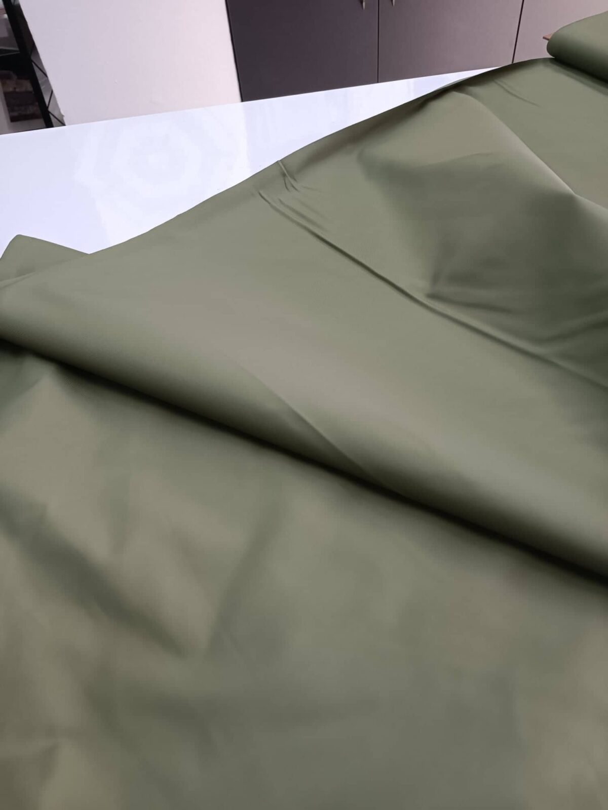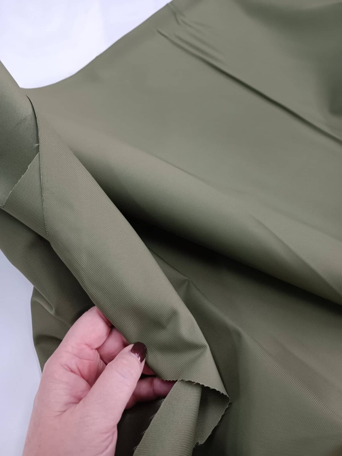 בד קורדורה דוחה מים. צבע חאקי חלק.