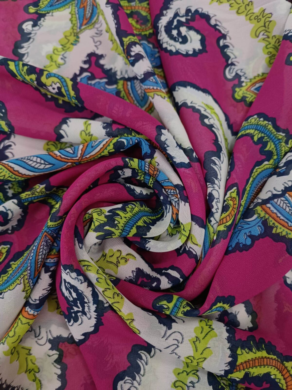 בד אריג שיפון מודפס דק ושקוף עם דוגמא פרחונית