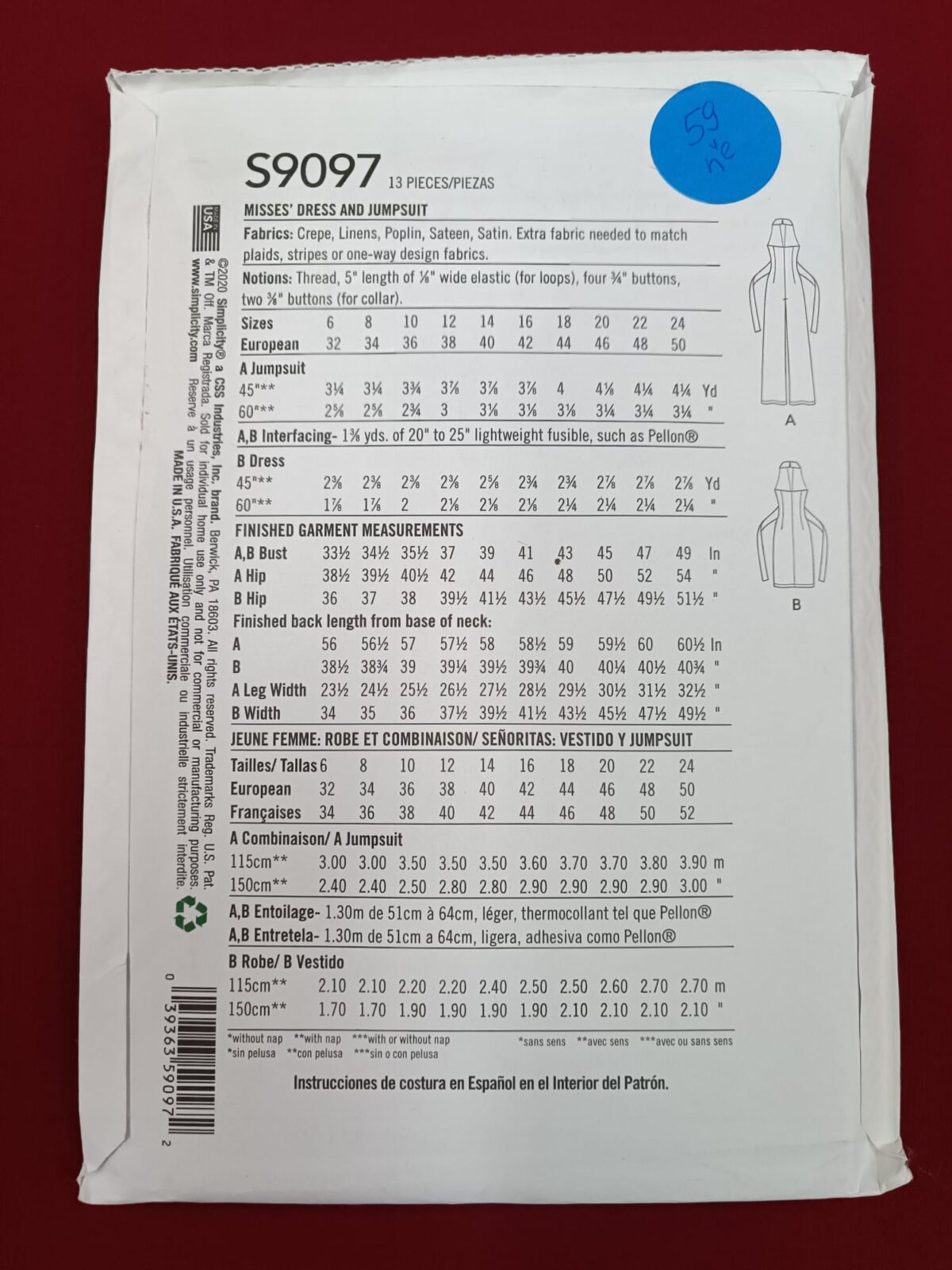 גזרות מחברת SIMPLICITY S9097H5