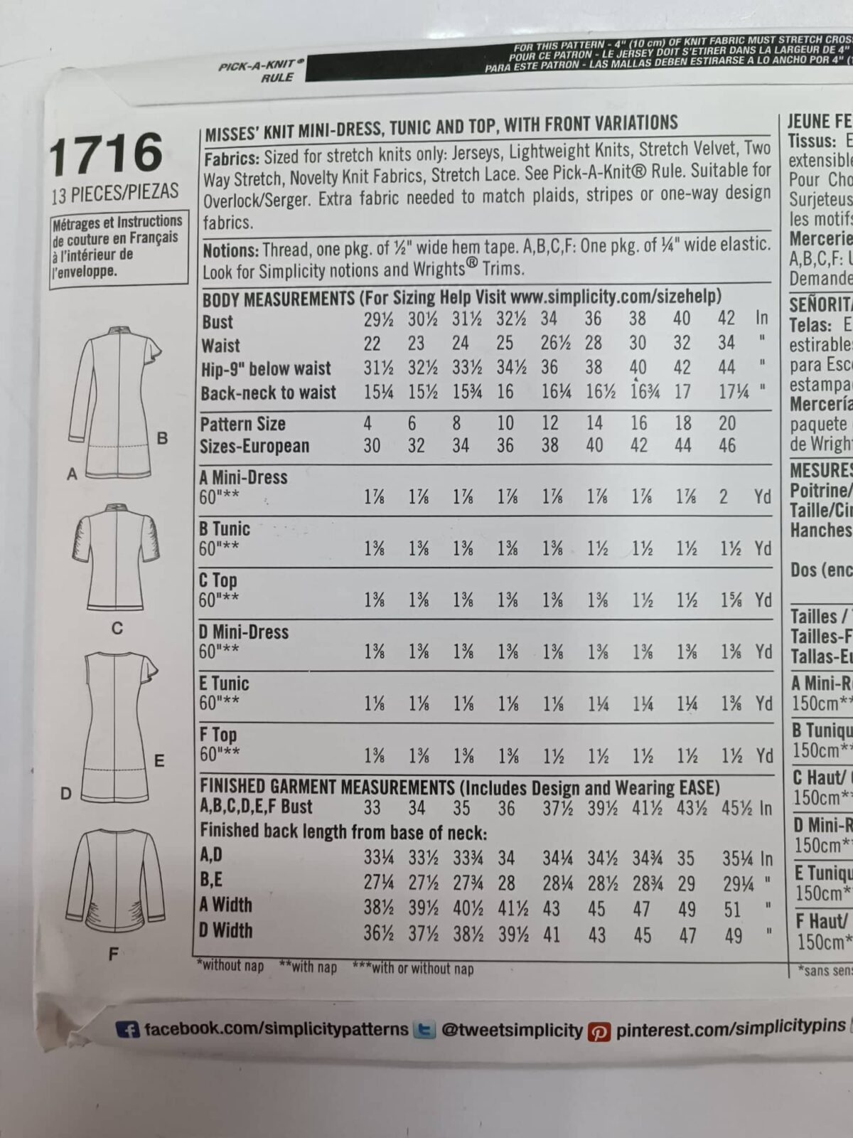 גזרות של שמלות וחולצות מחברת סימיפליסיטי 1716 D5