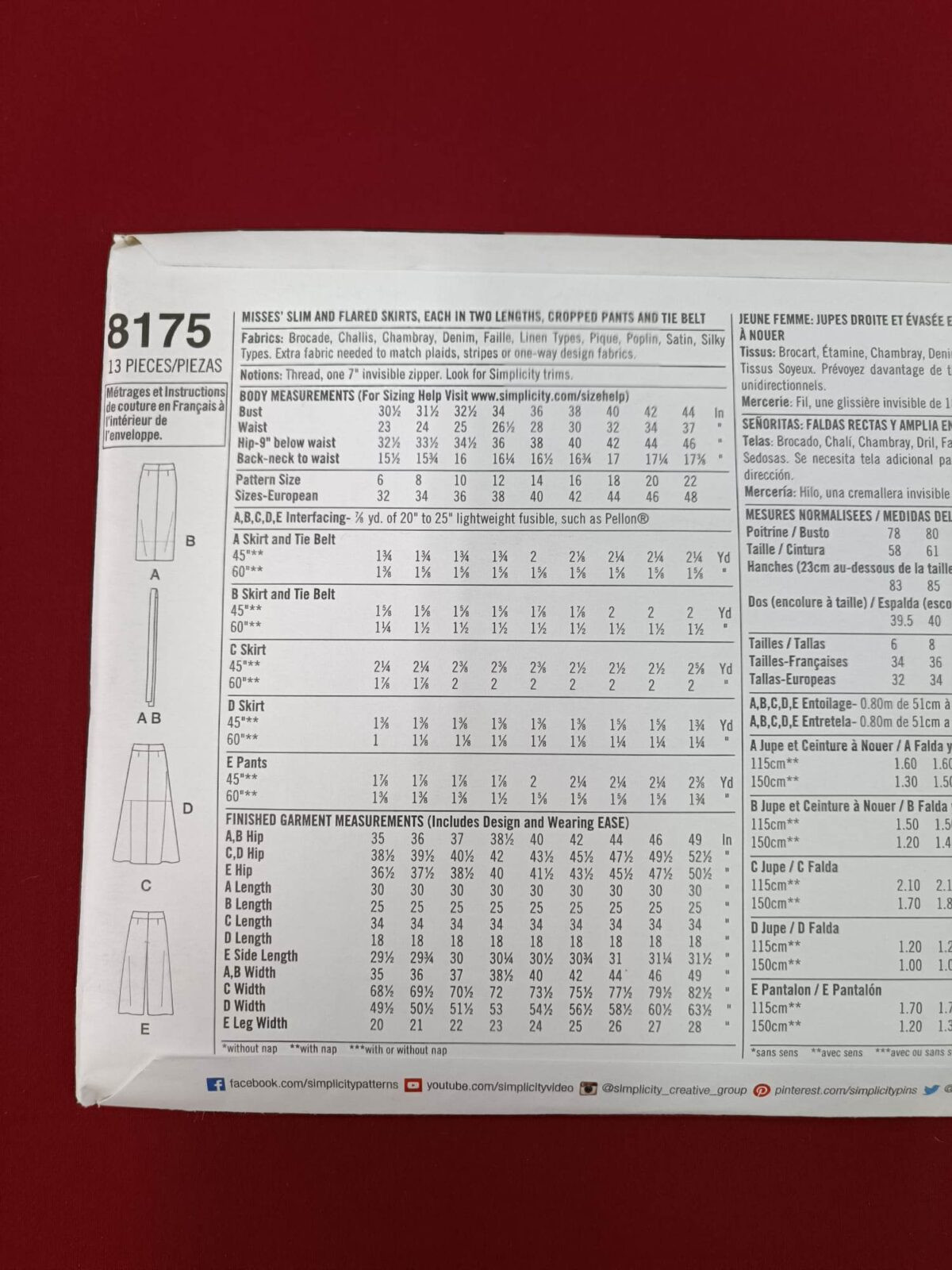 גזרות מחברת SIMPLICITY 8688R5