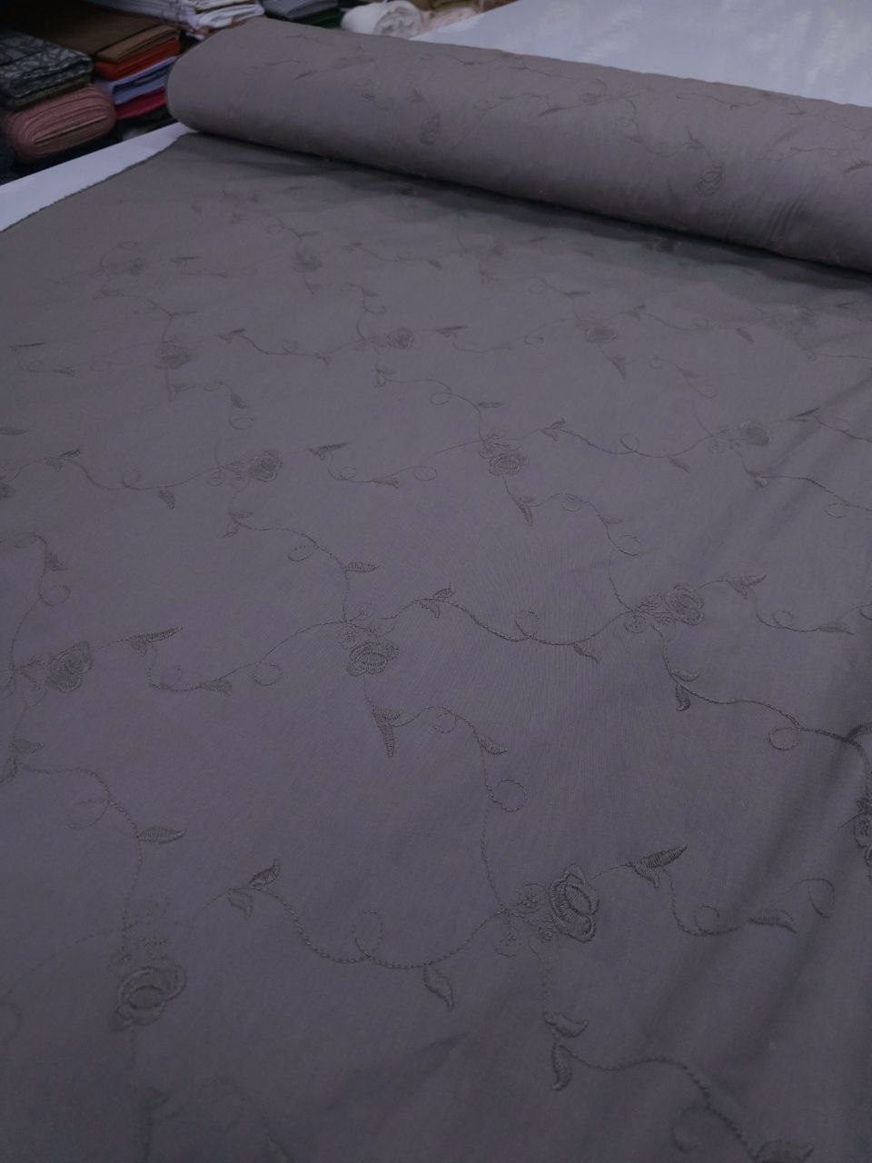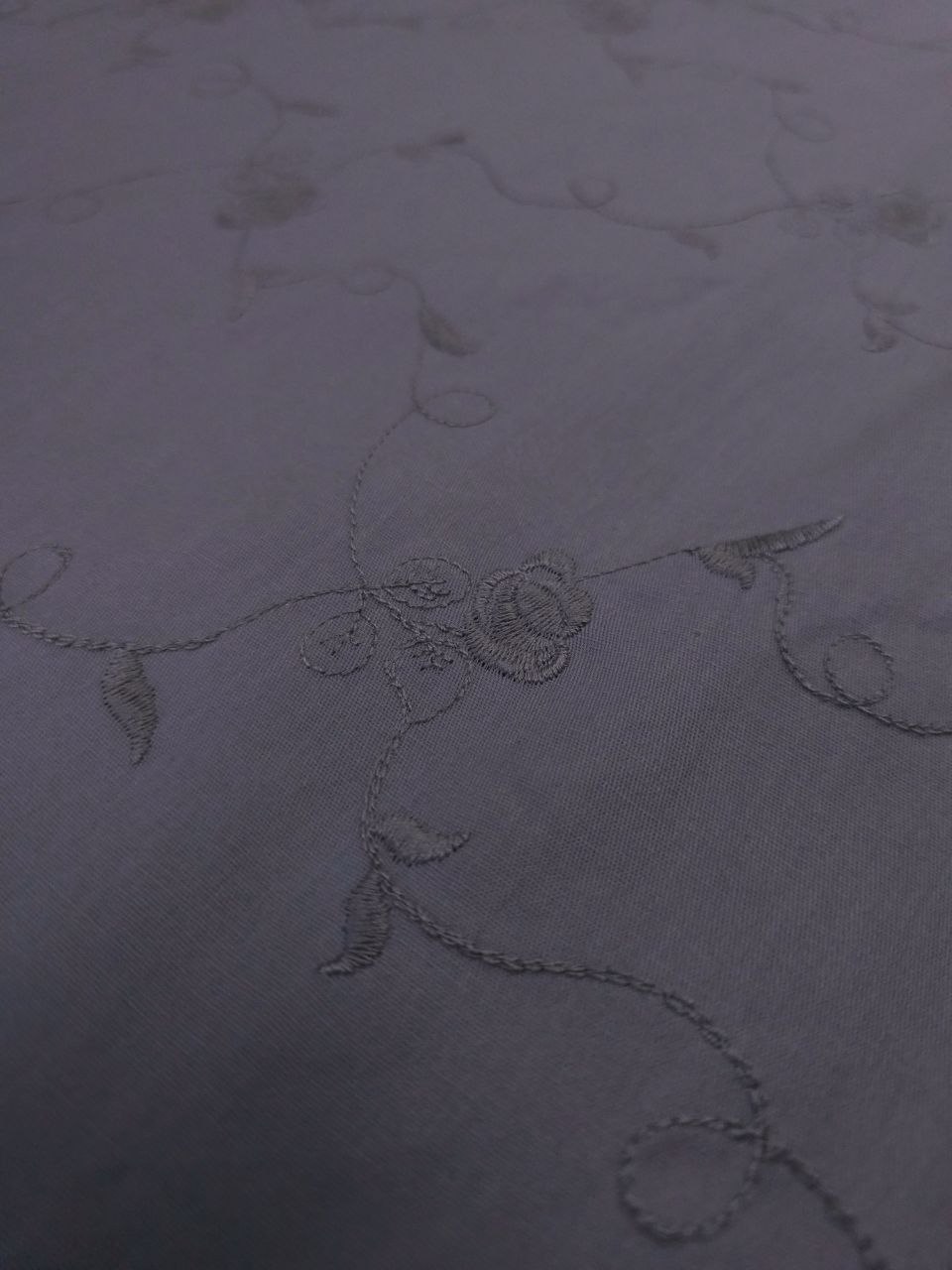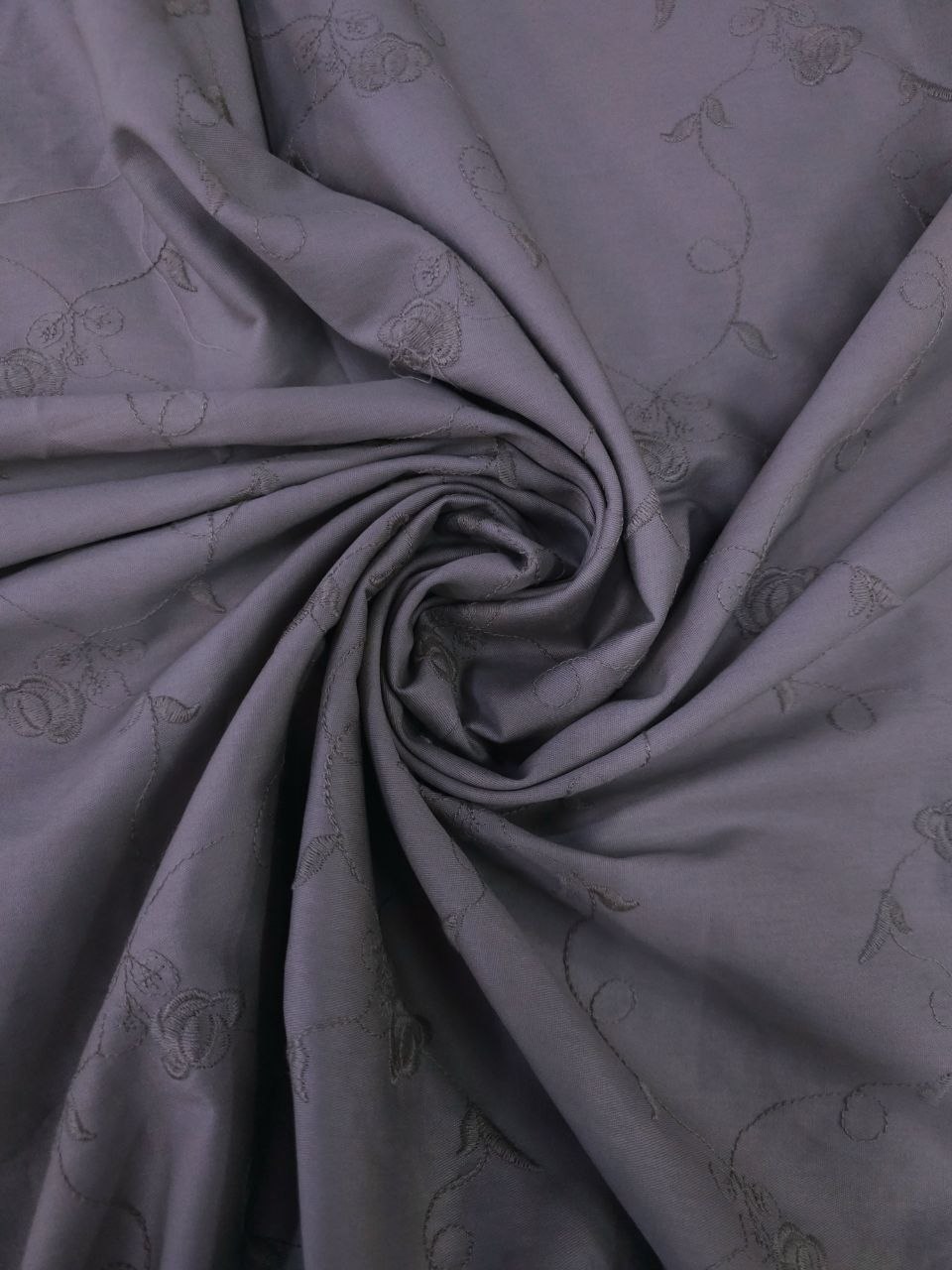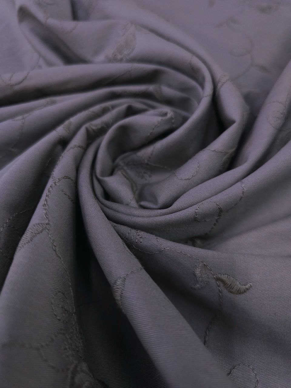 בד כותנה בגוון אפור עם רקמה עדינה בטון על טון.