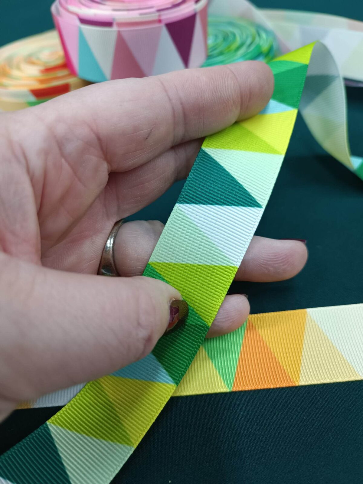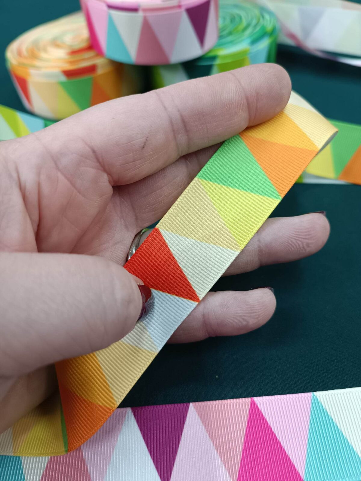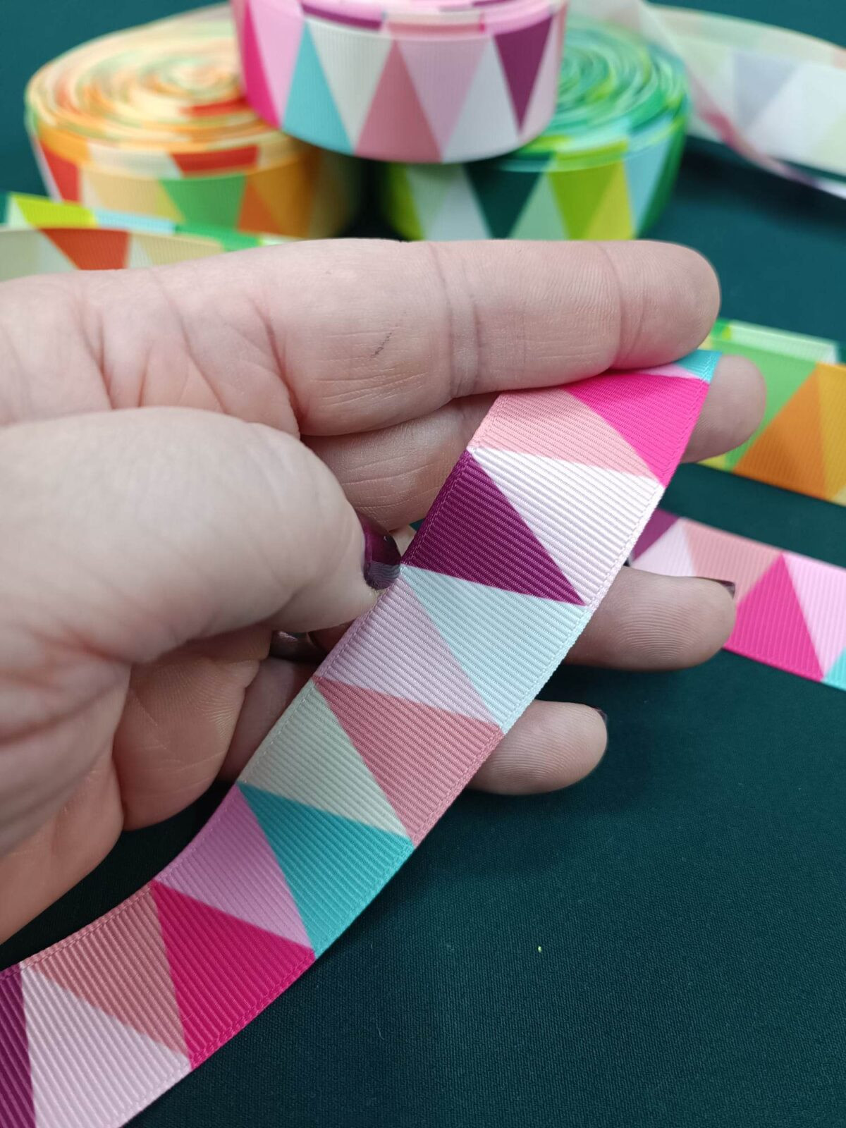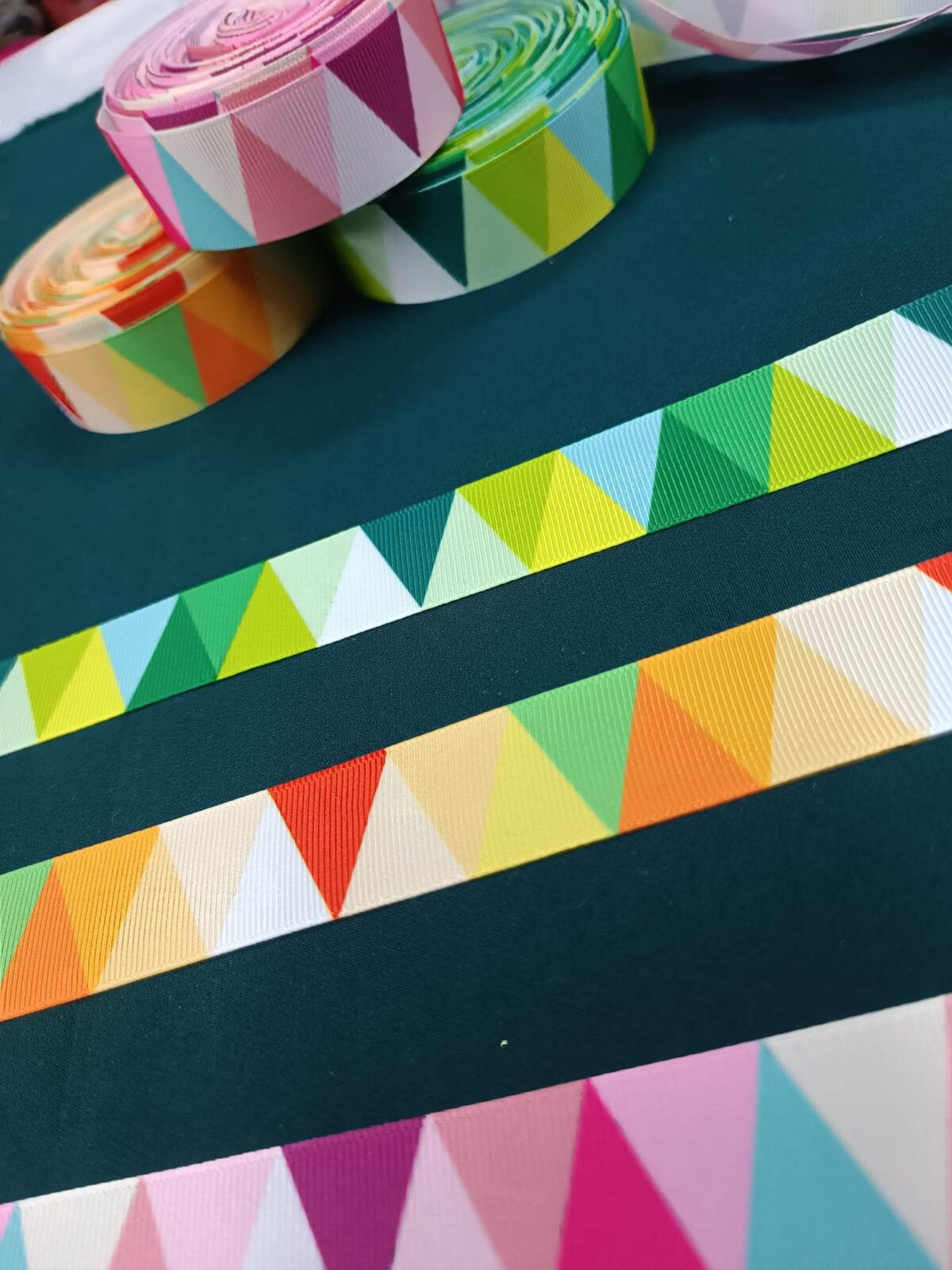 סרט קישוט עם דוגמא משולשים צבעוניים