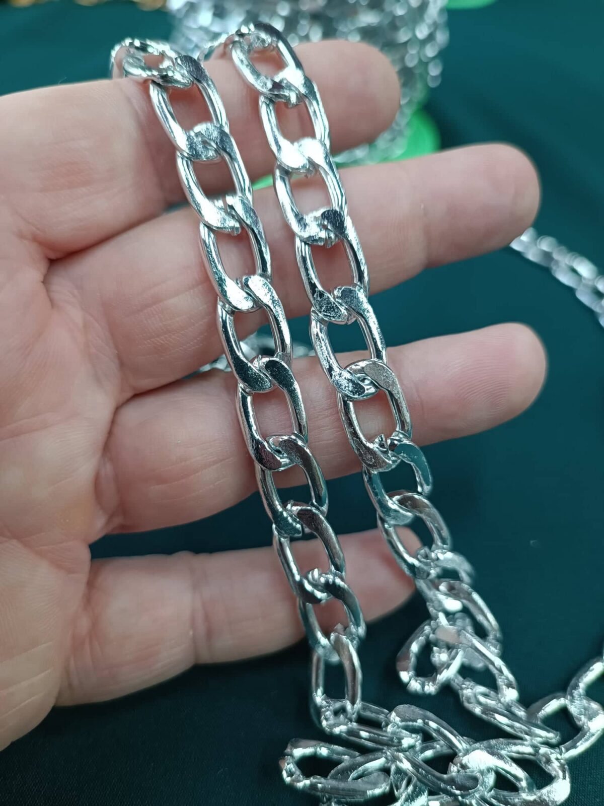 שרשרת אלומיניום 10 מ"מ רוחב ציפוי צבע כסף