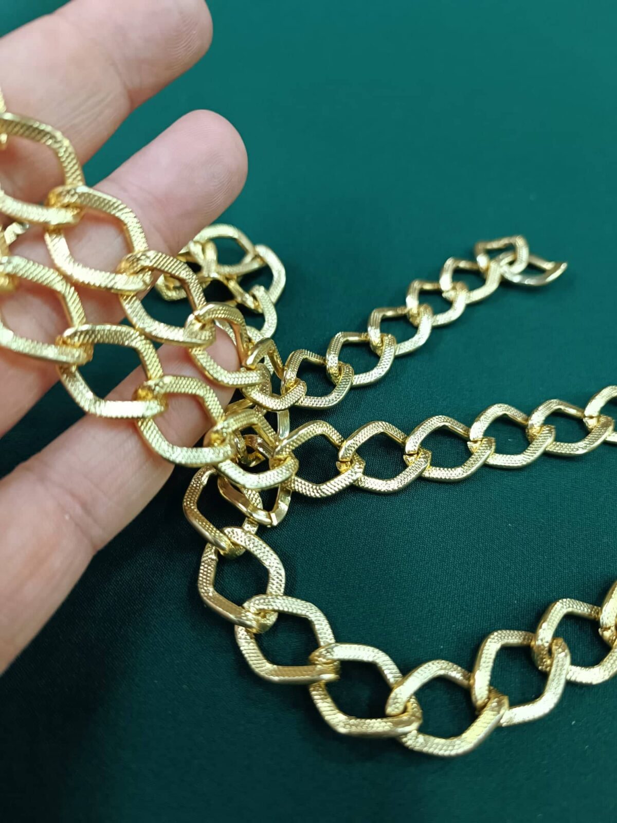 שרשרת מתכתית 12 מ"מ רוחב ציפוי צבע זהב
